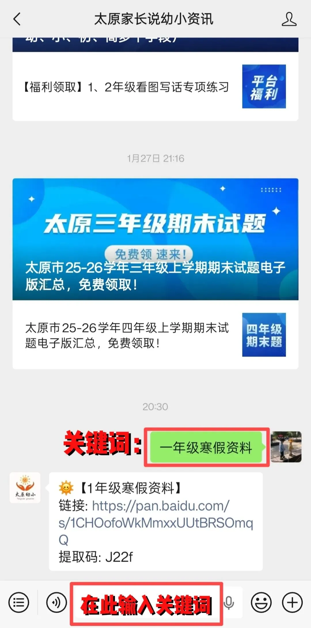 2.回复“一年级寒假资料”,获取下载链接