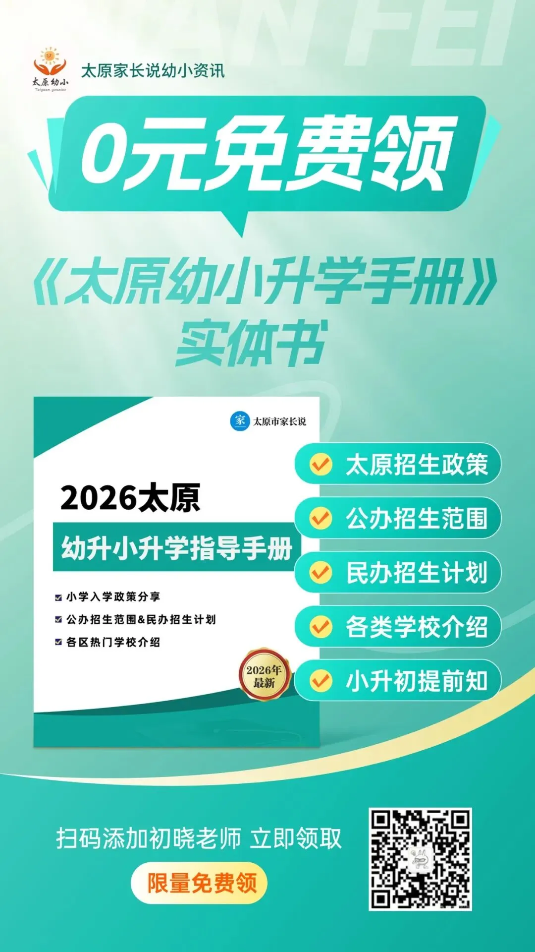 因此,初晓老师特地组建了【太原市幼升小家长交流群】。在群中,各位家长可以相互探讨跟孩子学习相关的问题,初晓老师也会定期分享最新政策、入学资讯、试题资料等。