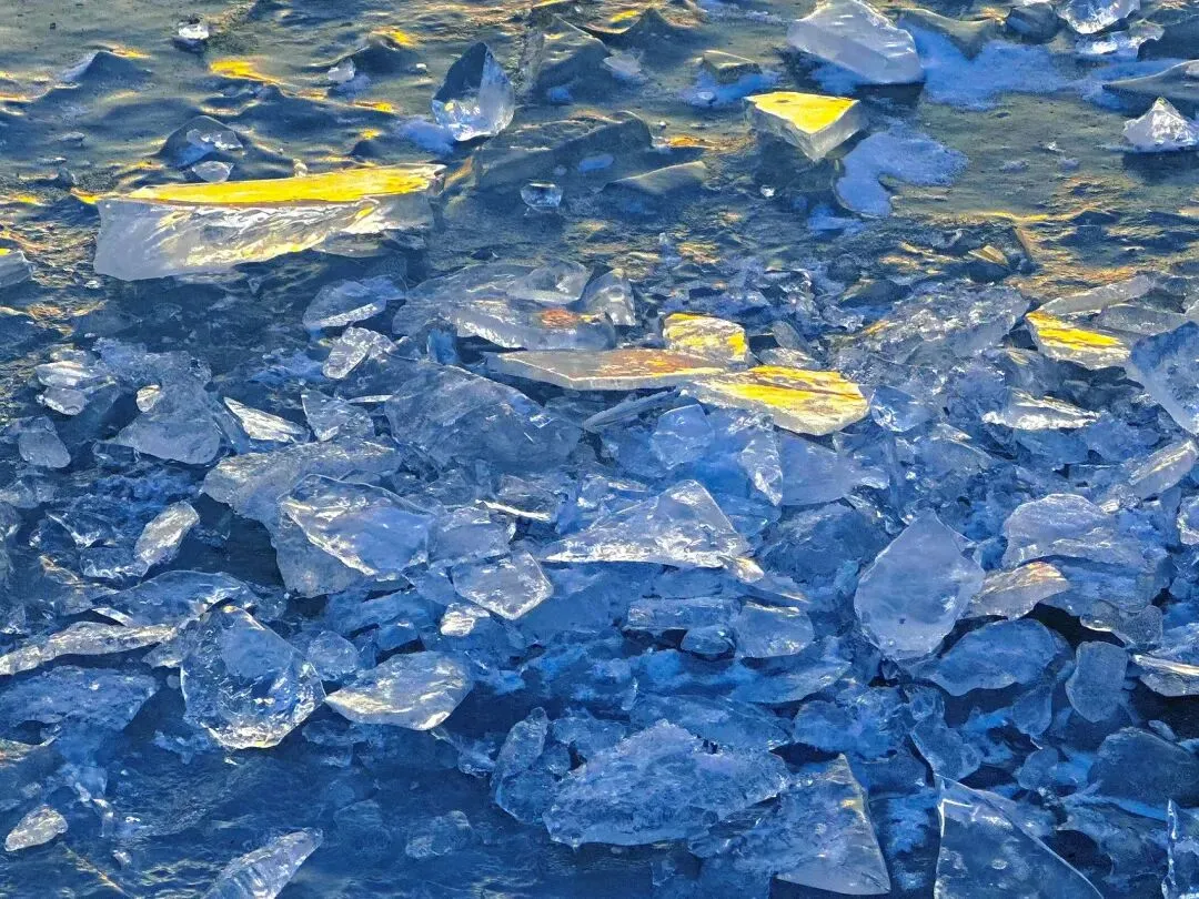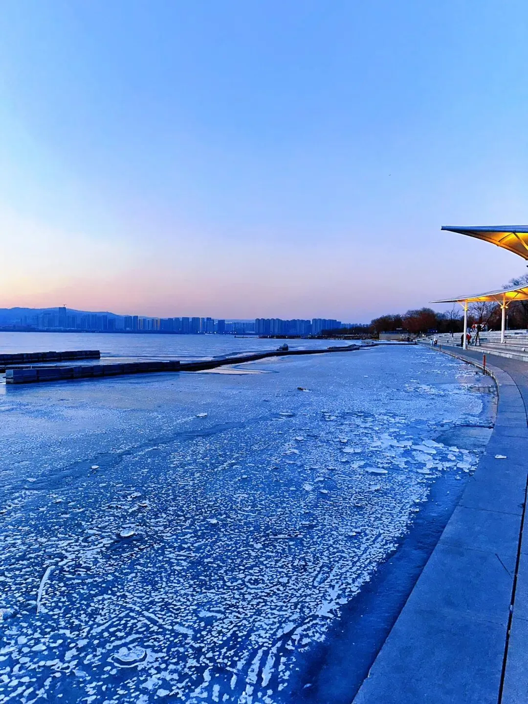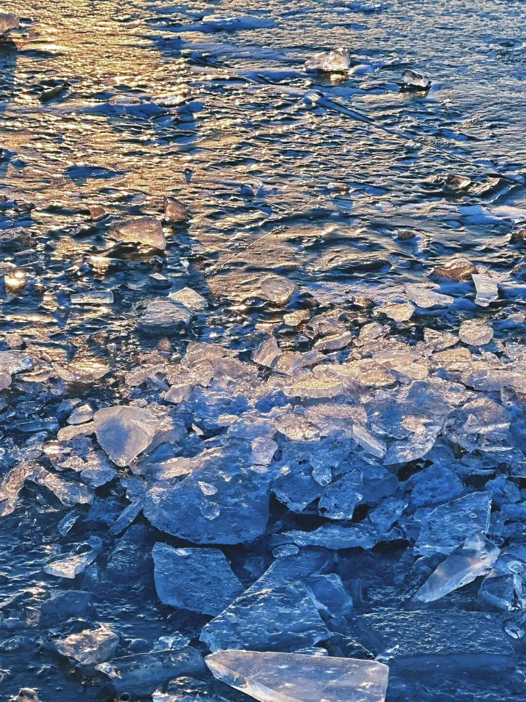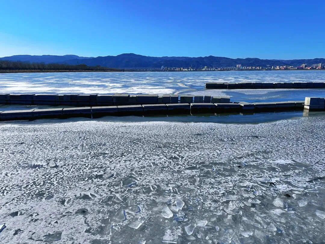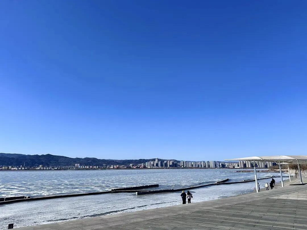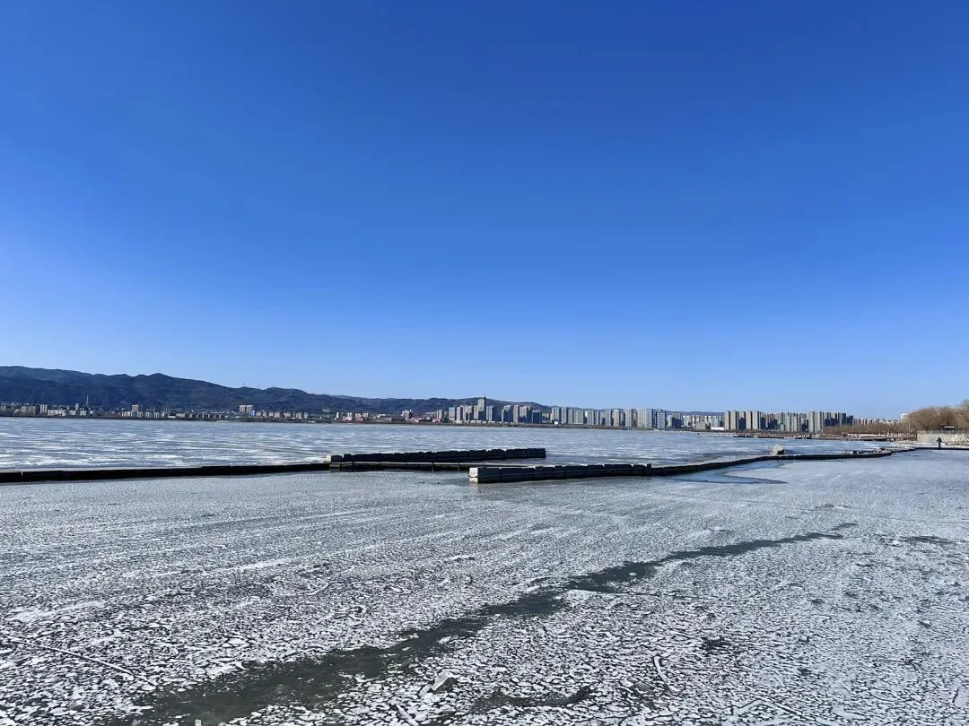 今天发一下:上周末去太原晋阳湖路上的风景,那天的天真的超蓝!一路上和男朋友心情无敌好😉来到晋阳湖后,跟着路标,朝着“听浪湾”的方向走,就可以看到湖景和碎冰冰了~🧊这是下午三点半左右的风景,阳光很好,晒得冰块闪闪发光~但是风也很大!🌬️下午落日后,拍完橘子海,打开闪光灯📸,也合适拍蓝调!比个耶✌️吧!和男朋友很和谐的一人带一只手套,哈哈😆又选出来了两张漂亮的,适合做壁纸的照片,再分享给大家!“Good luck, in countless tomorrow.”
