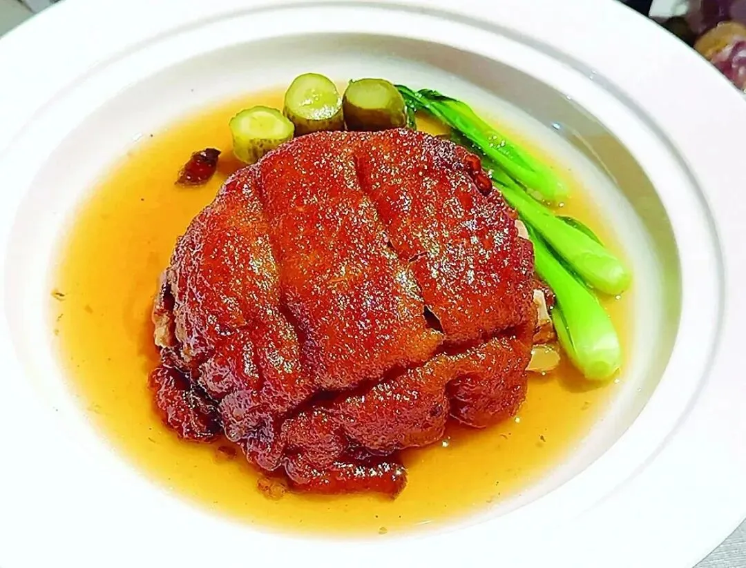 蒸烧肉是“富裕”的具象表达,带皮五花肉切厚片,经炸制后皮起皱,码入碗中铺葱姜、浇秘制卤汁,上笼蒸至软糯入味,肥肉不腻、瘦肉不柴;清蒸丸子则选精瘦肉剁馅,加淀粉、蛋清调味,挤成均匀丸子蒸熟,口感鲜嫩弹牙,二者一肥一瘦、一浓一鲜,合称“碗子双宝”,寓意日子富足、饮食丰沛……