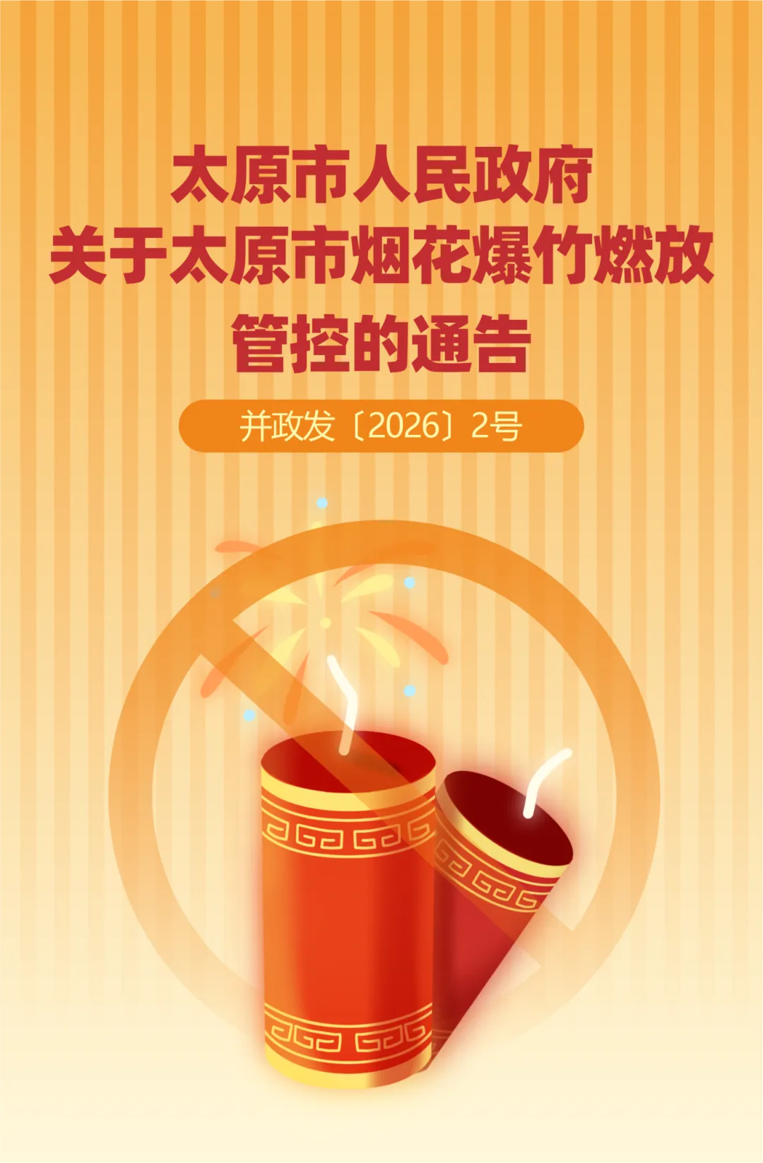 为加强春节期间烟花爆竹燃放管理,保障人民群众生命财产 安全,依据《中华人民共和国治安管理处罚法》《中华人民共和 国大气污染防治法》《烟花爆竹安全管理条例》《太原市禁止燃 放烟花爆竹的规定》等法律法规,就烟花爆竹燃放管控事宜通告 如下:
