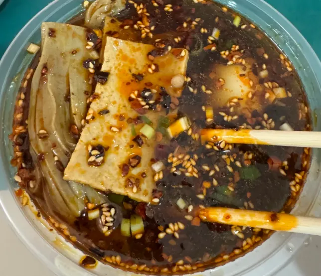 苦荞凉粉:这可是灵丘的一绝。它不是那种只有滑溜口感的凉粉,它是带着一种独特的、微微的苦味,但回甘极快。做法看着简单,其实讲究。把苦荞面调成糊,在锅里熬得透亮,晾凉了切成条。吃的时候,必须得配上当地特制的“烂腌菜”和老陈醋,再泼上一勺红油辣子。一筷子下去,酸、辣、香、凉,顺着喉咙滑下去,那股子爽劲儿,能让人激灵一下。