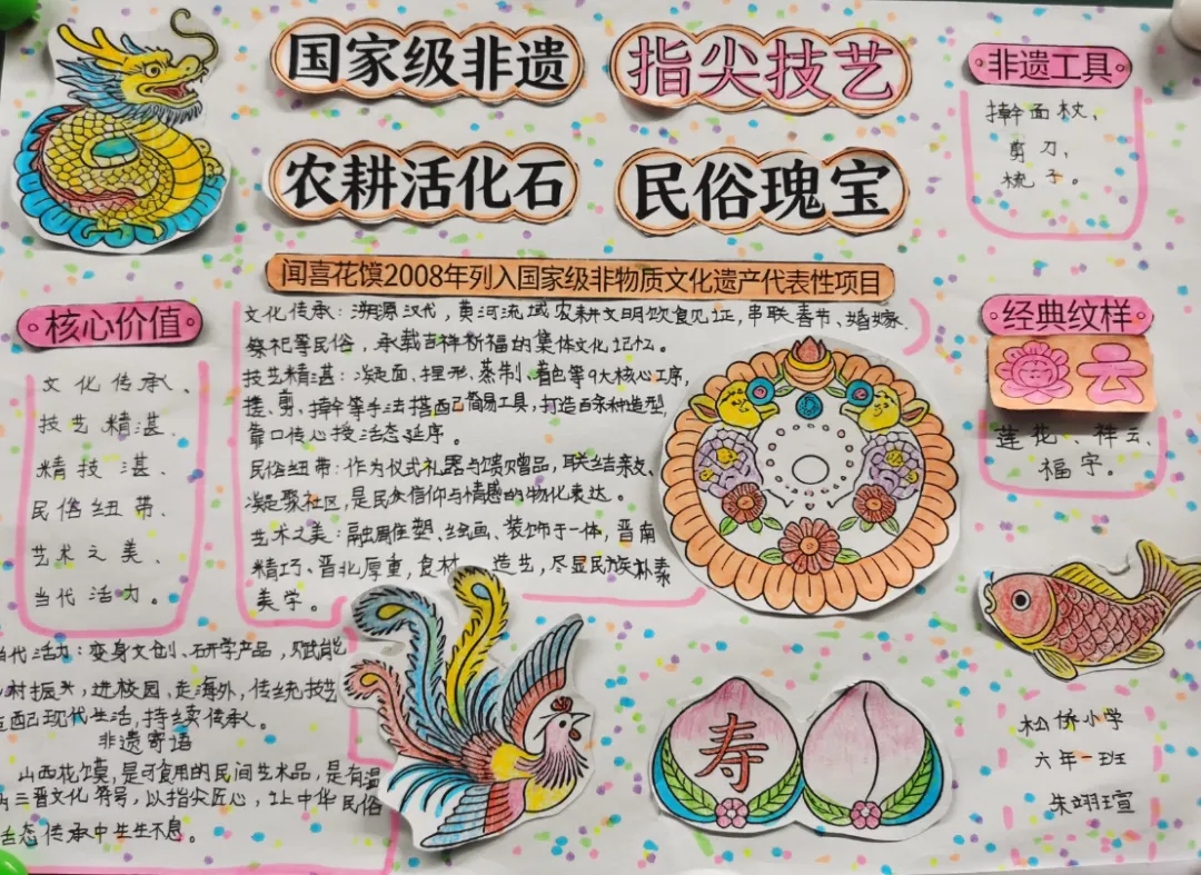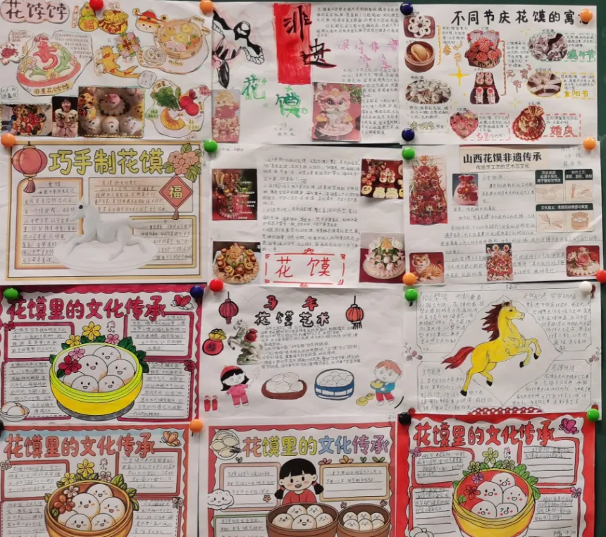 低年级以“创意猫耳朵拼盘——双色巧作,乐享创意”为主题,孩子们在家长指导下,用花样彩泥面团、安全工具及彩泥装饰搓条、切块、压形,发挥创意剪裁成小花、小动物造型,点缀出“彩虹马年拼盘”等作品,在了解猫耳朵山西民俗渊源的同时,提升了动手协调能力与协作意识。
