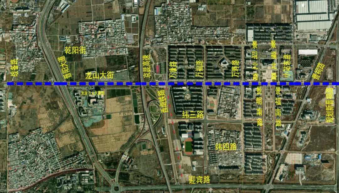 战备路至晋阳大道段:中间14.5米车行道,两侧各2米绿化带,2.5米非机动车道,3.25米人行道(含树穴)。