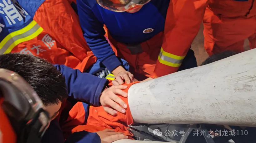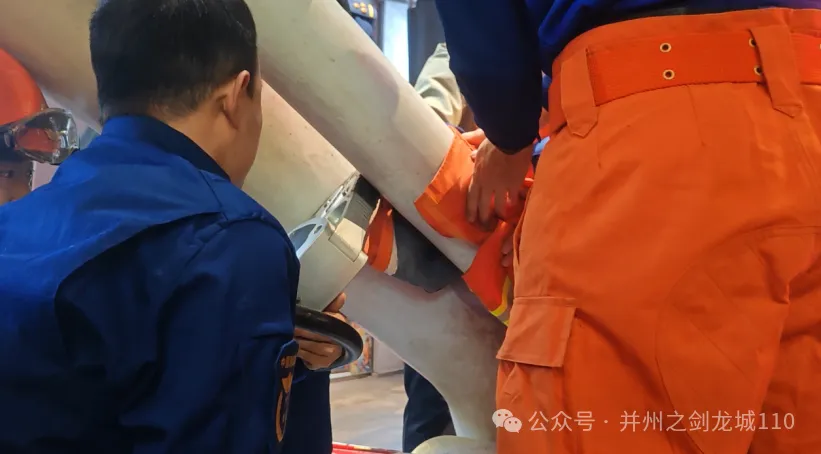 由于现场缺乏工具,且轻提孩子时其喊痛,他判断不可盲目移动,随即通过对讲机清晰告知赶来的消防员所需携带的专用器材。其间,他不断温柔安抚受惊哭闹的孩子。特勤大队二站消防员携带液压破拆工具组等器材火速抵达。