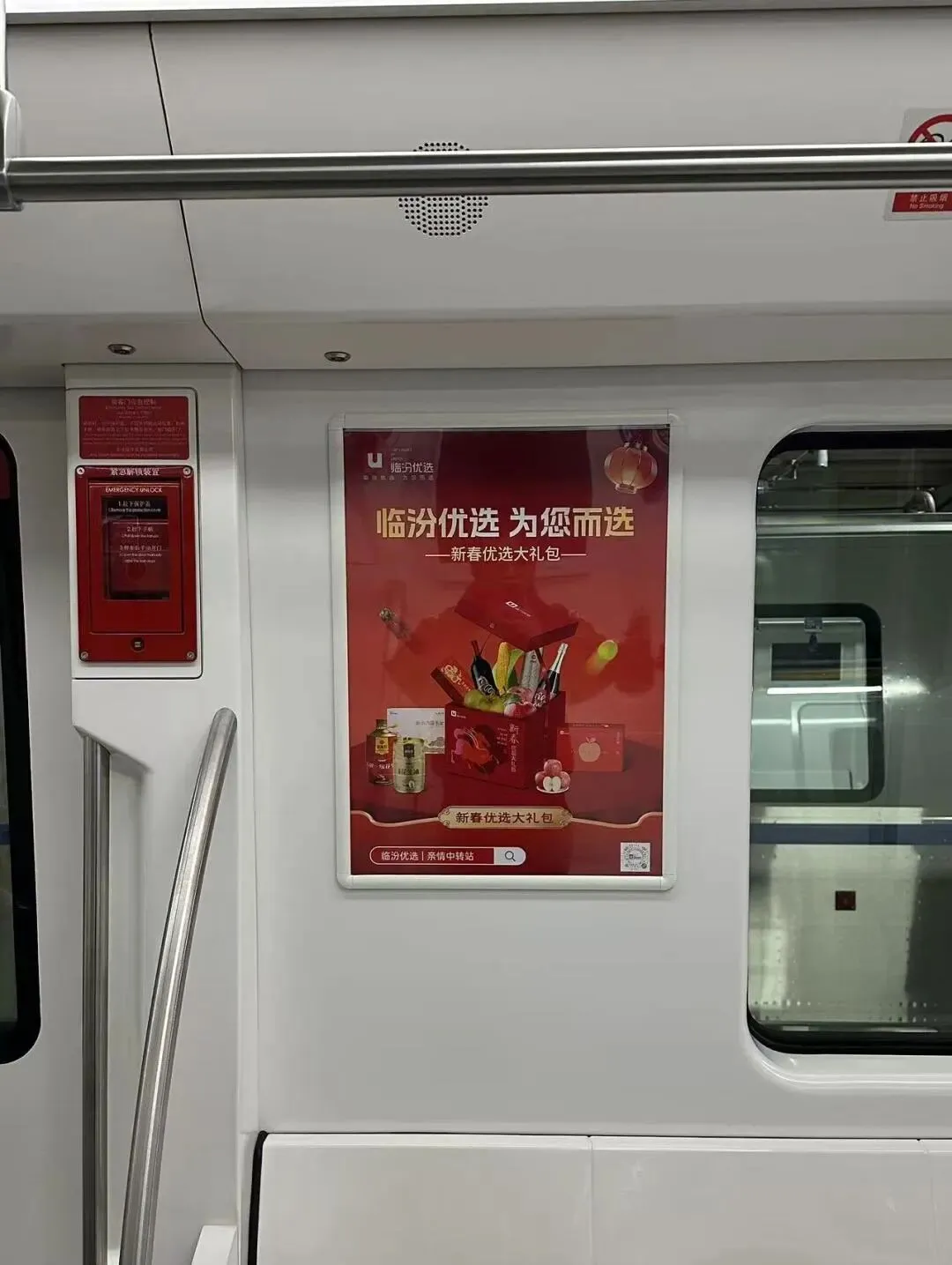 自2026年2月10日起,“临汾优选”成功入选北京地铁1号线“年货进京”主题巡展活动,品牌形象与核心产品广告覆盖1号线列车车厢,化身“流动的晋南味蕾长廊”,伴随首都市民春节通勤与出行。