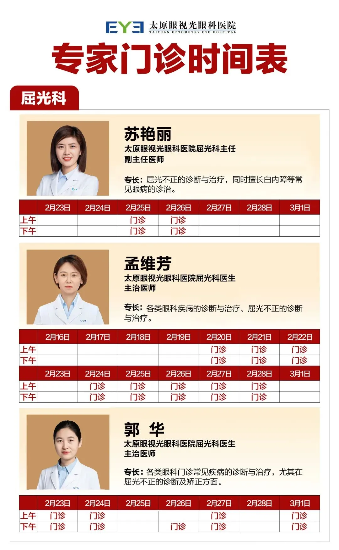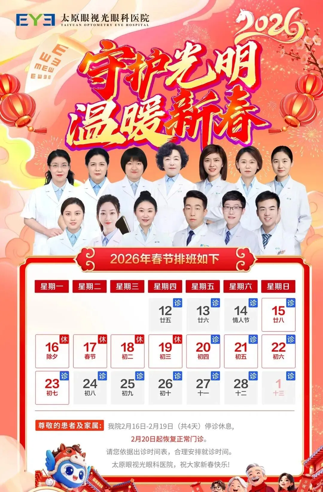 太原眼视光眼科医院春节门诊安排新鲜出炉