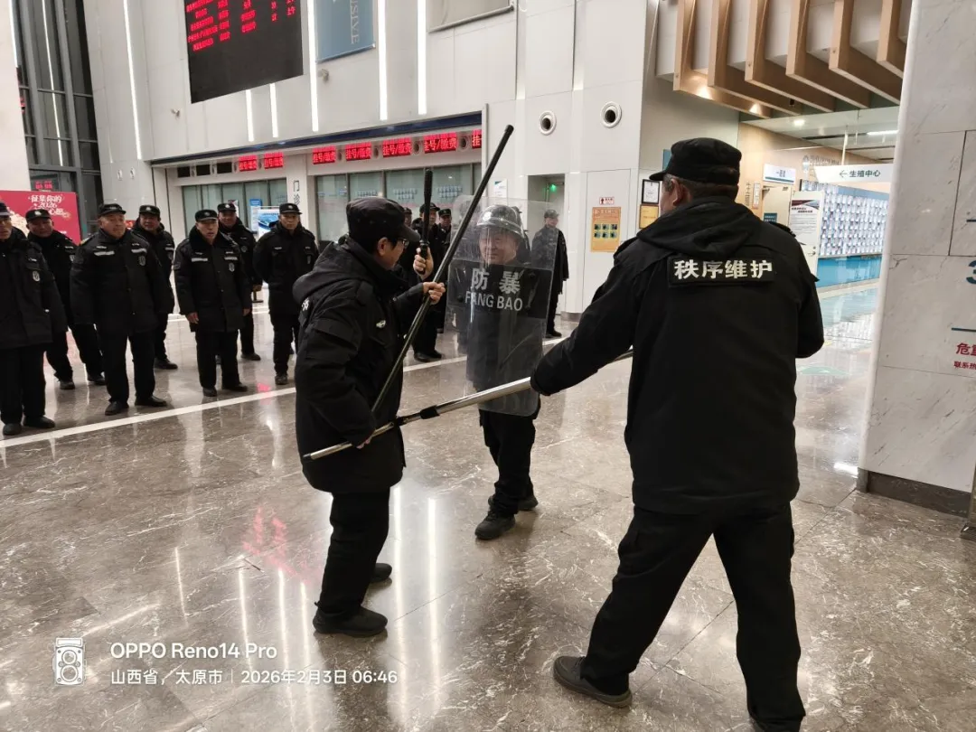 医院以练促防、以考提能,2026年2月3日保卫科组织消防、反恐、清雪除冰演练,提升应急协同处置能力;5日邀请小店区驻地消防队开展汾东院区中控室消防实操考核,11日联合杏花岭区相关单位完成府城院区中控室工作人员实操考核,实现两院区中控室消防考核全覆盖,并于当日接受杏花岭公安分局反恐工作检查指导。