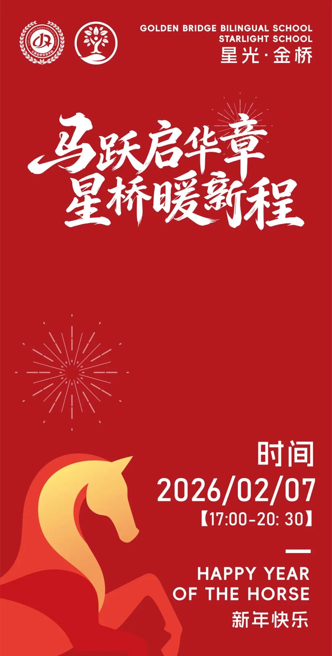 展望2026,我们将以一马当先的闯劲、万马奔腾的气势,在教育路上实干笃行,续写金桥双语中学的崭新辉煌!