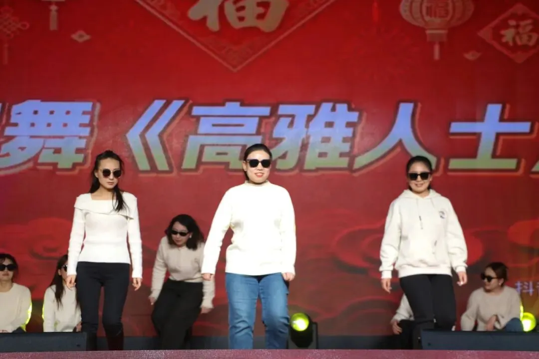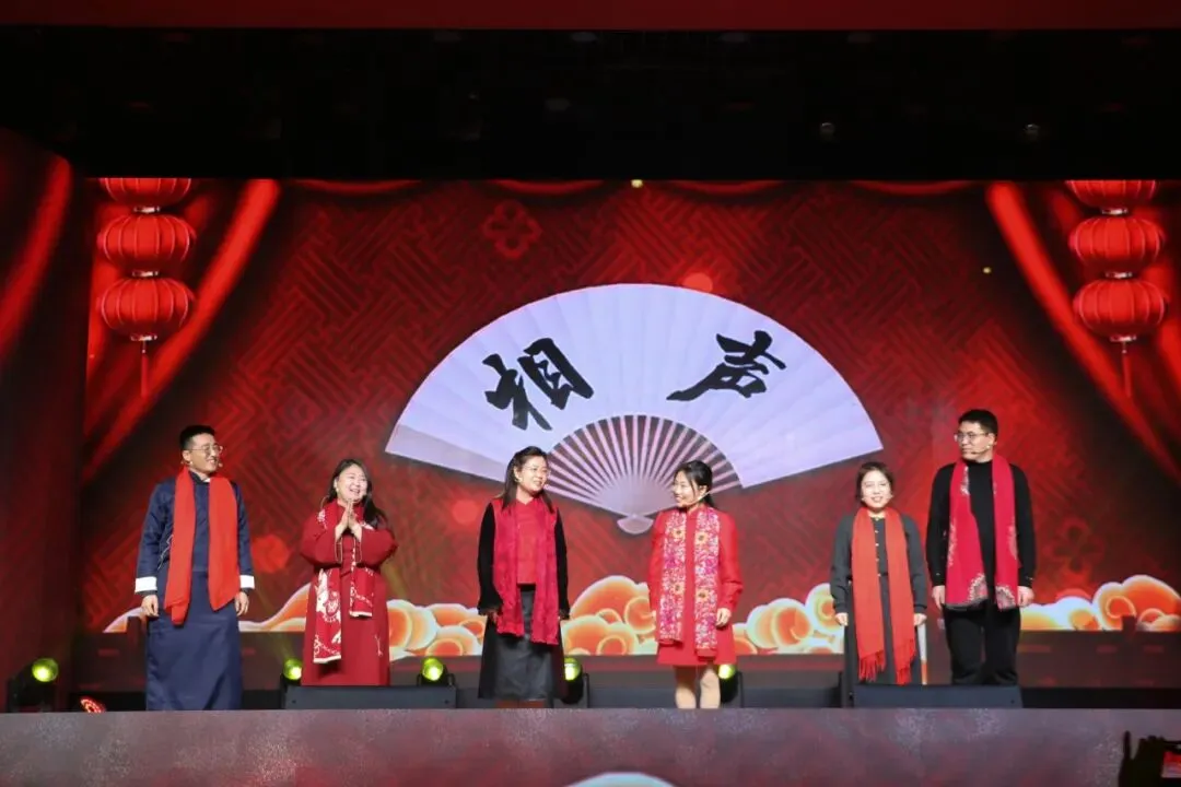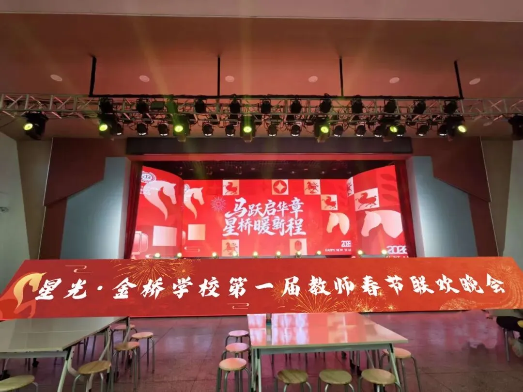 流行舞串烧《炸响财年 好运爆棚》动感十足,9位小学部老师用舞步送上新年祝福;群口相声《团拜》妙语连珠,6位老师以幽默传递情谊,祝愿大家马年顺遂;宿管阿姨们的《张灯结彩》把气氛拉到了高潮;相声《金桥晚间新闻》笑点连连,逗得人捧腹大笑;《企鹅舞串烧》俏皮可爱,15位高中部老师带大家走进童趣世界,欢乐值拉满。合唱《朋友》重温经典,旋律中满是并肩同行的珍贵;朗诵《星桥赋》气势恢宏,5位老师诉说着金桥人的教育情怀与追梦决心;最后,全体教职工压轴合唱《相亲相爱一家人》,歌声交织着温情,晚会也来到了落幕之时。