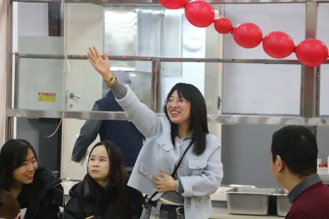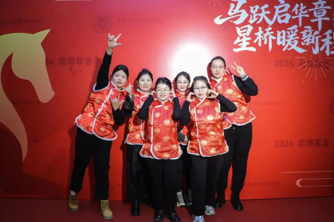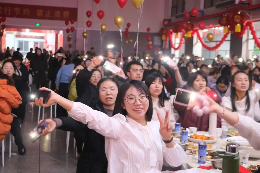 17:00,老师们陆续步入会场,在打卡合影区留下灿烂笑脸,暖场音乐轻柔流淌,将团圆的氛围悄然拉满。