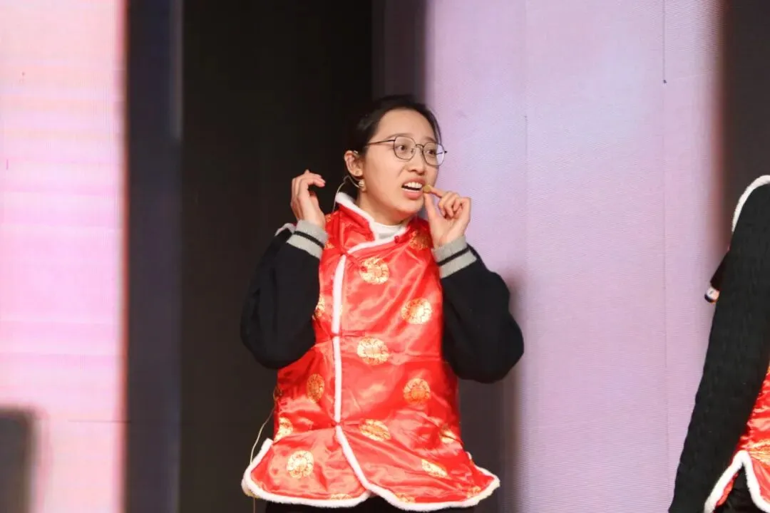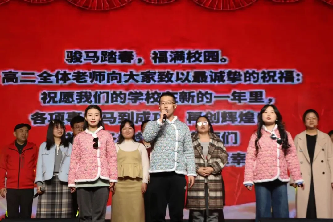 小学部17位老师带来的开场舞《鎏金岁月》,用灵动舞姿勾勒出教育路上的初心与坚守;高中部的歌舞《大花轿》喜气洋洋,10位老师褪去儒雅,用活力点燃全场热情;三句半《高三这一年》以幽默诙谐的语言,解锁备考时光的苦乐日常,道出师生同心的动人瞬间;初中部的独唱《天后》婉转悠扬,触动了每个人心底最柔软的角落;配音秀《期末的爱与愁》则复刻教育日常,7位老师的创意演绎引发全场共鸣,满是教育人的酸甜与温暖。