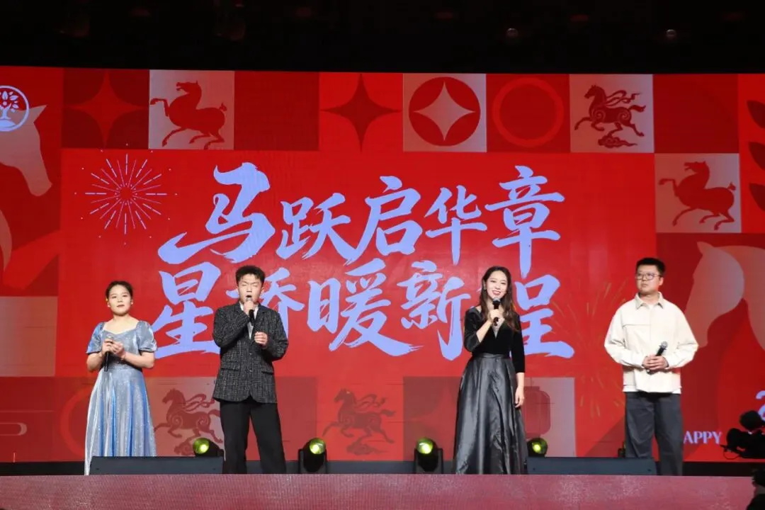 17:58,灯光聚焦舞台,主持人以“马跃启华章,星桥暖新程”的主题开篇,正式宣告晚会拉开帷幕。