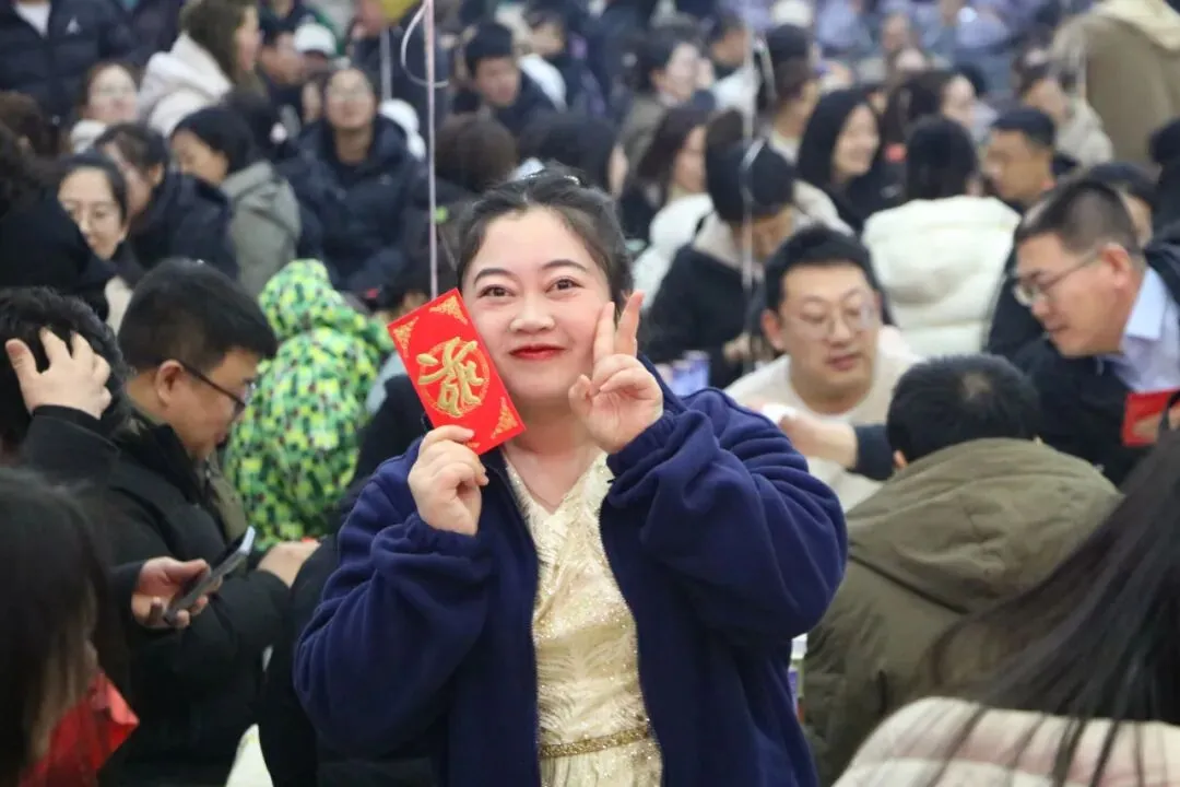 漫天飞舞的红包让现场欢腾不已,大家起身欢呼、伸手迎接,把马年的财运、福运统统抱回家。