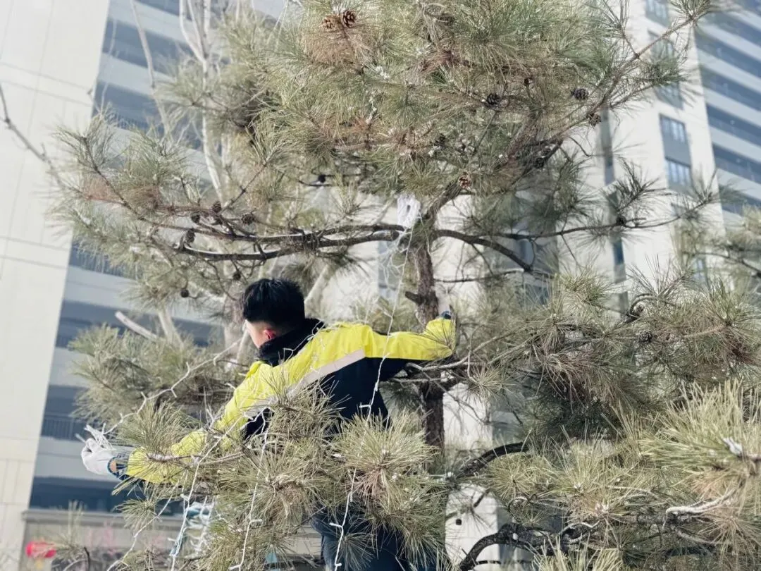 春节前夕,物业开展了全方位的园区大扫除:环境团队仔细清扫每一处角落,擦拭每一扇玻璃,清理每一片绿化带;精心修剪树木,整理花坛,让冬日的园区依然整洁有序。还对平时不易发现的卫生死角进行了全面的清理,力求每个角度干净整洁。