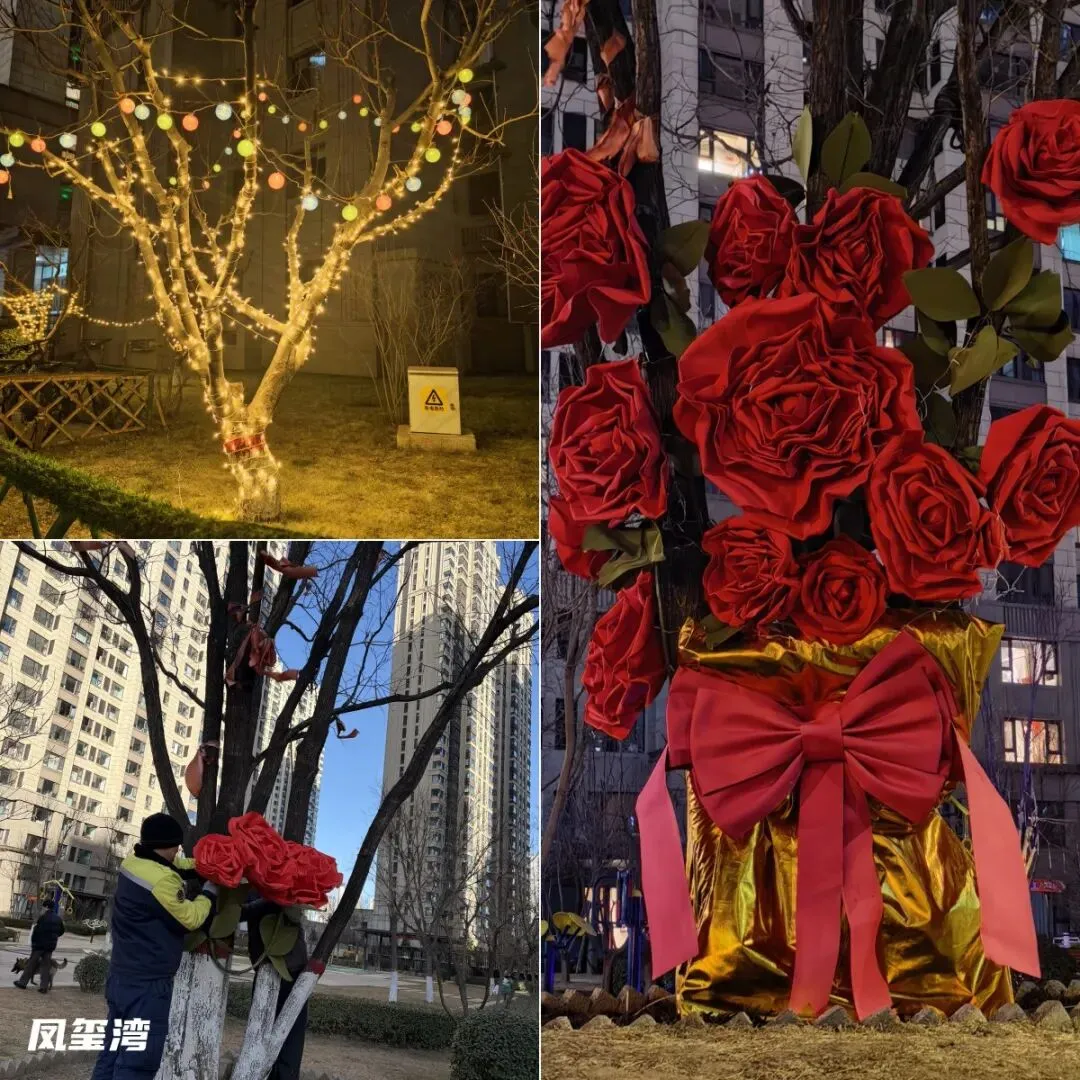 在1月31日,万科物业新进驻的凤玺湾小区,物业的工作人员们也早早的装扮起了小区,挂彩灯、铺灯条,热闹非凡。“这是我们和凤玺湾度过的第一个春节,小区亮起来,节日的氛围浓起来,相聚的日子才会热闹。”凤玺湾物业经理张宝红介绍道。