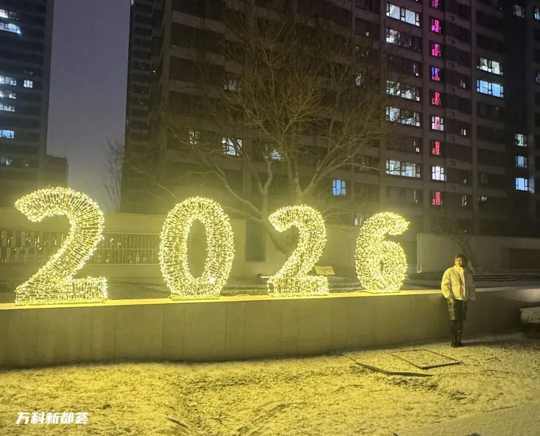 “物业手真巧啊,这么大个灯竟然是自己做的。”在万科新都荟小区,物业团队历经1周时间焊接打造的“2026”主题亮化大字吸引了来往业主的注意,这个园区的视觉亮点,从冰冷的钢材到温暖的光影,每一个焊点都凝聚着对业主的祝福。
