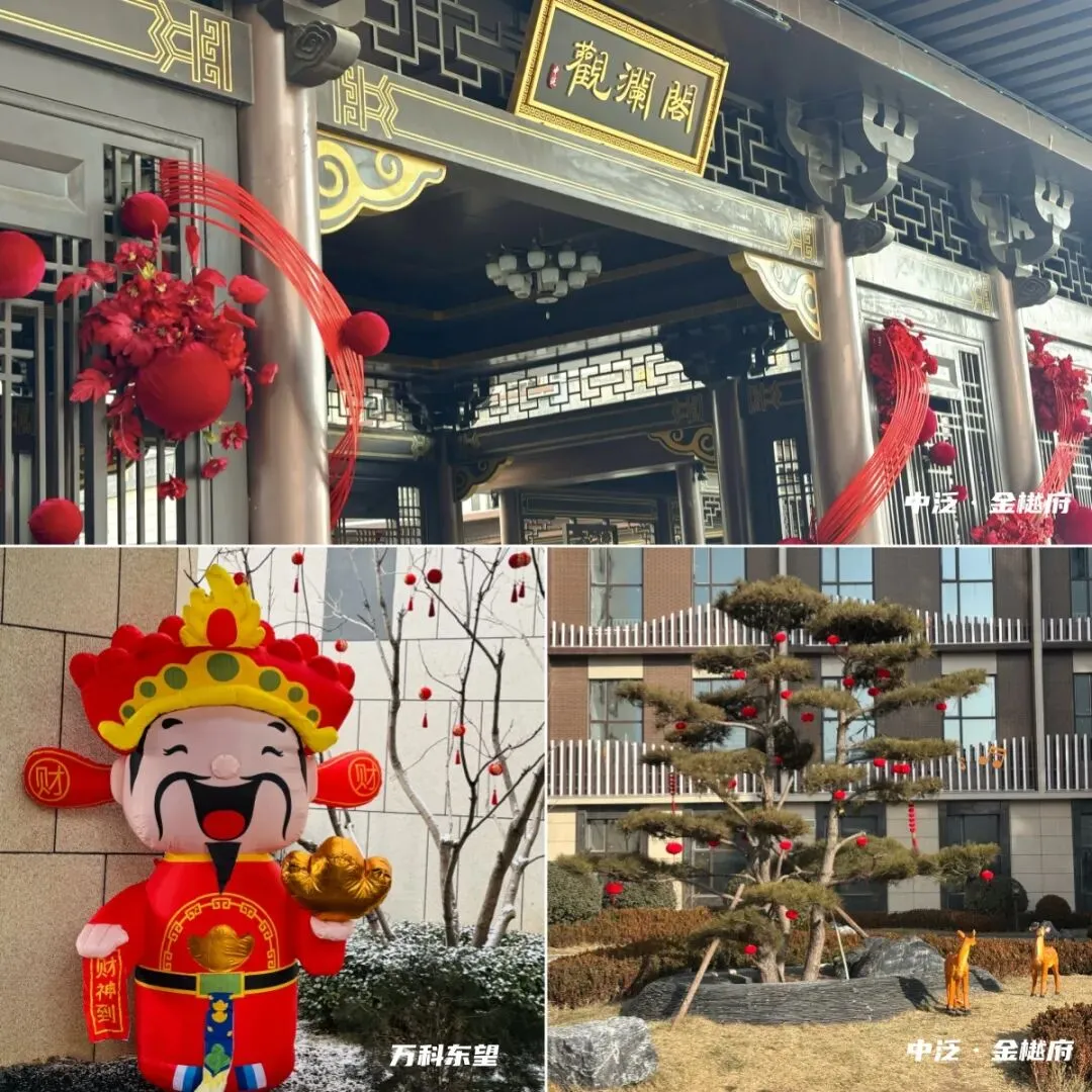 不仅如此,各个小区的装饰也争奇斗艳,在中泛金樾府小区,古色古香的建筑搭配红色的装饰,更有传统农历新年的韵味;万科城市之光各色各样的灯组,也让夜晚的小区格外的热闹;在万科蓝湾传奇,树枝上的彩色灯笼与地下装点的郁金香相得益彰,烘托出浓浓的节日氛围感。