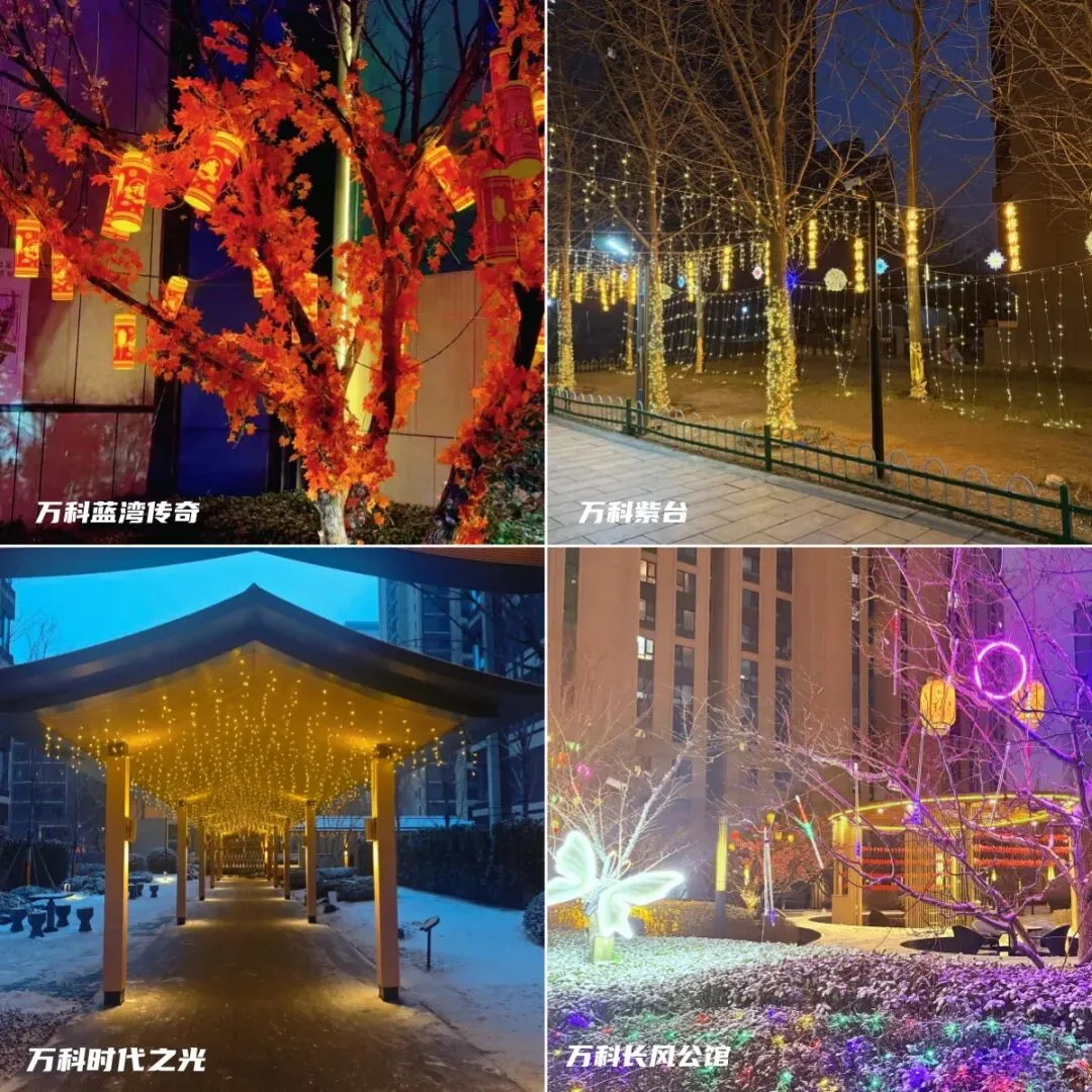 “今年物业布置得特别用心,孩子一进小区就喊好漂亮,过年的感觉一下子就来了。”万科金域蓝湾业主王女士牵着孩子的手,在彩灯下驻足拍照。