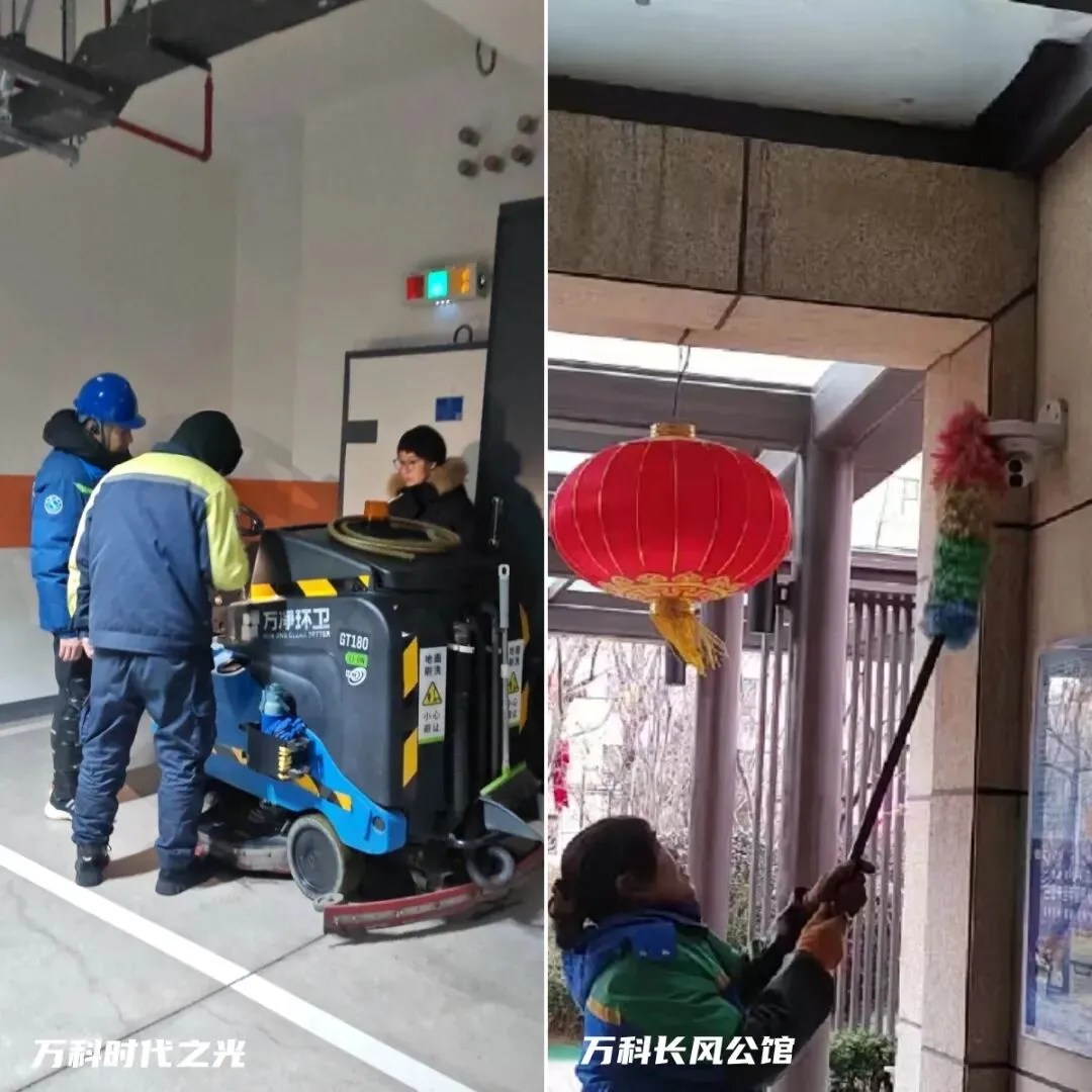 这场与冰雪的“遭遇战”,反而让年前的大扫除更为彻底。在清除冰雪之后,保洁团队紧随其后,对露出的地面进行深度清洁,冲刷泥水痕迹,擦拭公共设施。