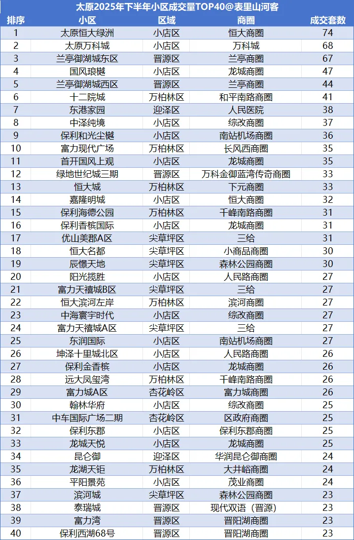 今天就为大家整理一份,太原当前成交量靠前的小区名单。成交量大的小区,未必是最完美的选择,但基本能避开楼市里的大坑。