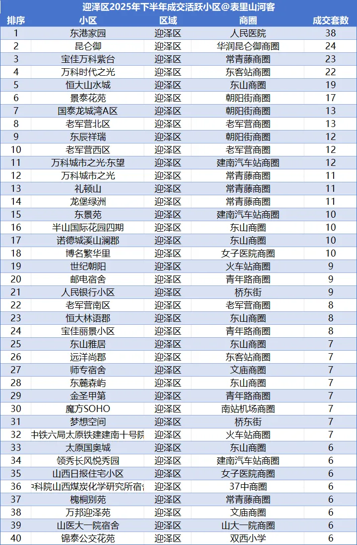 当下太原楼市的整体趋势,依旧是量稳价跌、结构性分化。相比之下,成交量大的小区,拥有更清晰的价值锚点和更好的流通性,无疑是更稳妥的选择。