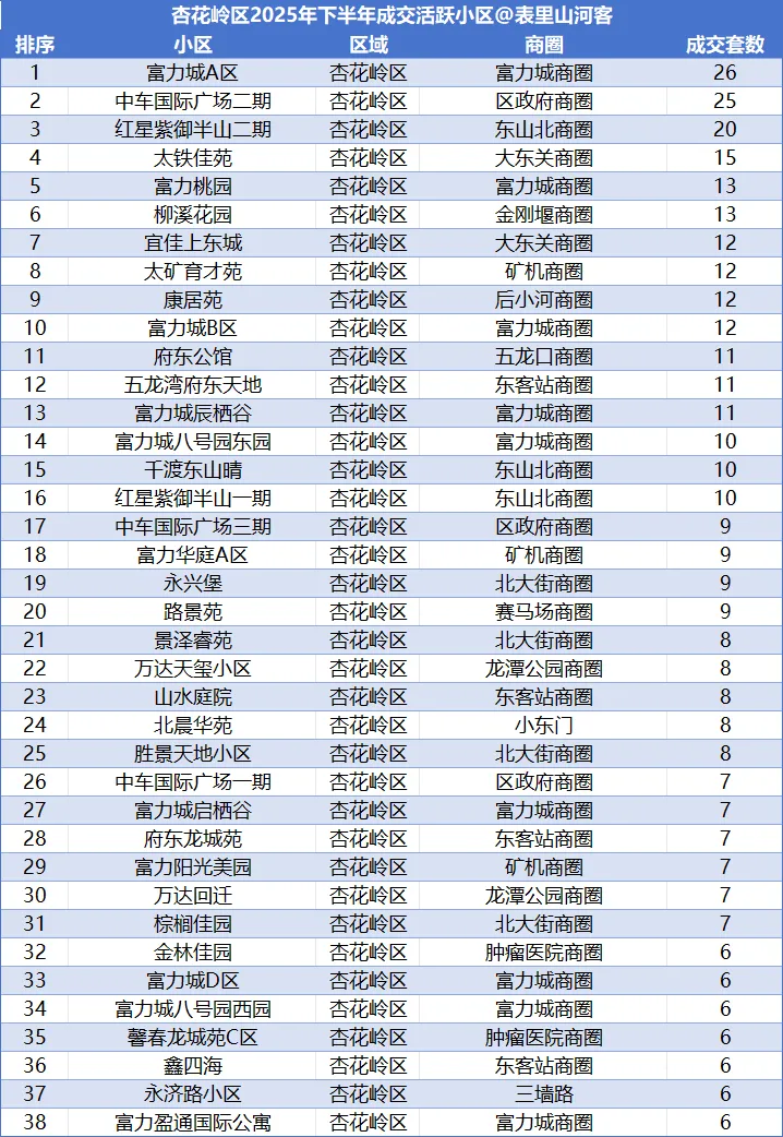 以下为各城区活跃小区,如果你有心仪的目标城区,那么下面的榜单更有参考价值: