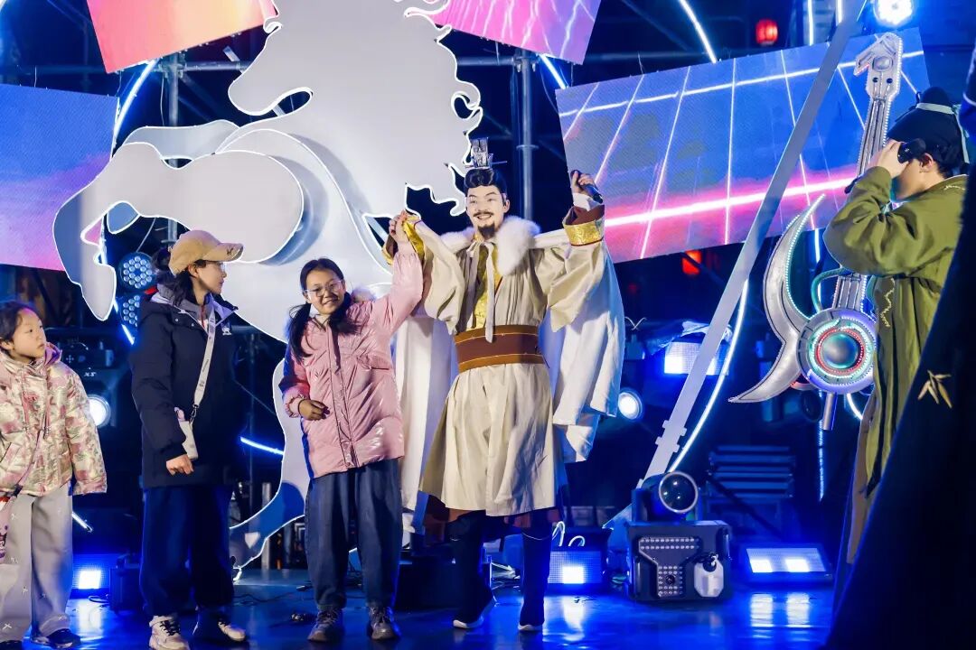 南街则上演最具创意的“幻境・赛博狂想电音庙会”。“刘关张”电音主理人团队与巨型机甲关公联动,结合传统国乐与潮流电音,开启一场古代英雄穿越赛博时空的视听狂欢。