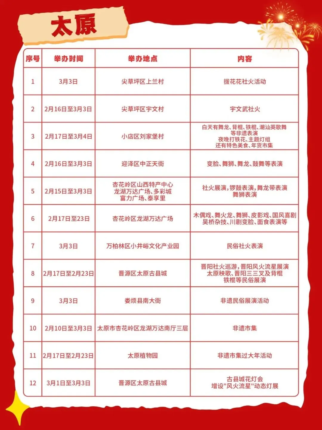 2月17日-2月23日期间另有太原秧歌、背棍、铁棍等民俗展演。