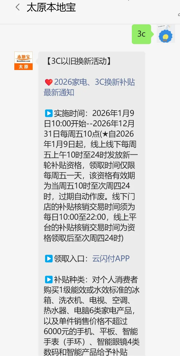 ✅活动期间,用户打开“云闪付APP”(需切换至本市),在首页——本地精彩——以旧换新专区获券。数码类获券后在有效期内前往本市参与活动商户门店购买符合补贴条件的数码产品(单件销售价格不超过6000元)可享8.5折补贴最高500元优惠。