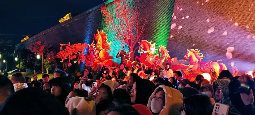 本次嘉年华以福马迎春为核心,以行进式互动演绎为脉络,融合晋阳文化、唐风晋韵与国潮创新,锚定盛唐礼乐与昭陵六骏两大文化核心,将北门城楼化作时光渡口,层层铺展李世民归晋贺岁的晋阳盛景,每一步前行都在解锁千年之前的盛世华章。小年亮灯仪式已提前释放高光:全城亮灯瞬间,市楼光影演绎凤凰涅槃,东西城墙灯光秀与天幕激光交织成河,福塔40米高空花瀑流光溢彩,巨型灯组与街巷光影一步一景,将千年古城点亮成梦幻仙境。白天沉浸式演艺轮番开演,威亚飞天、非遗民俗、NPC互动同步上线,让游客提前感受“白天逛古城、夜晚赏花灯”的极致年味。