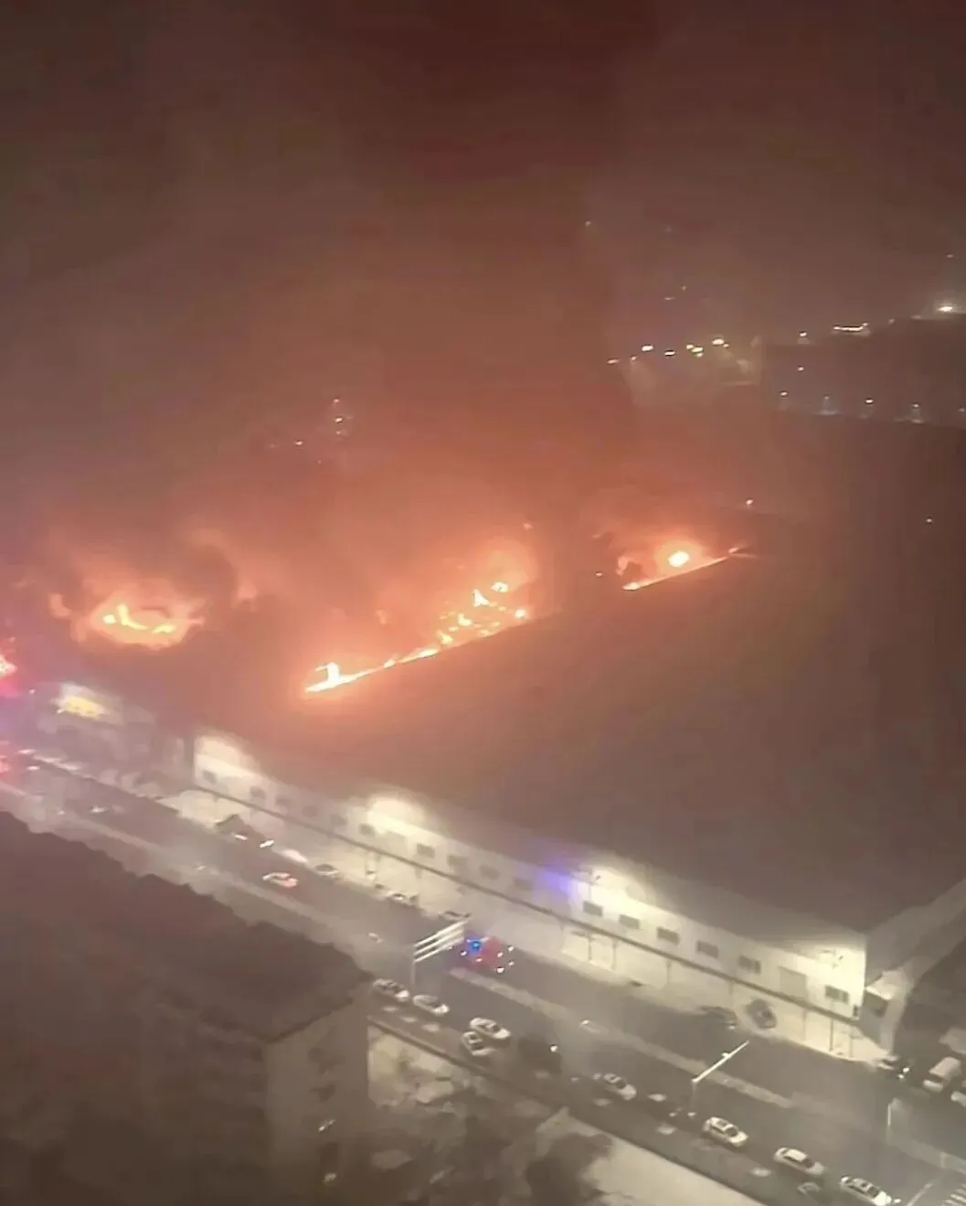 整栋建筑过火,烧成了一条线,在夜色中非常显眼。