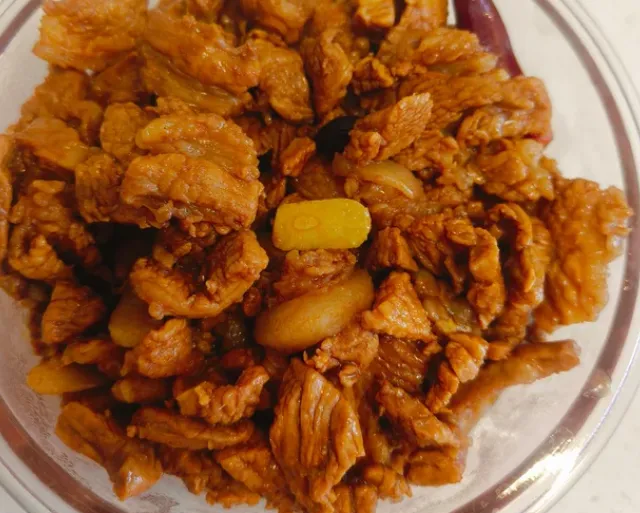 到了饭点,得尝尝当地的“小车炒肉”。其实就是粉条炒肉,但讲究个火候。粉条得是红薯粉,劲道,吸满了肉汁,油汪汪的却不腻。肉片切得薄,在锅里大火一滚,带着点焦边,吃起来那是真香。这菜不精致,但下饭,一盘子下去,连盘底的油都想用馒头蘸干净。