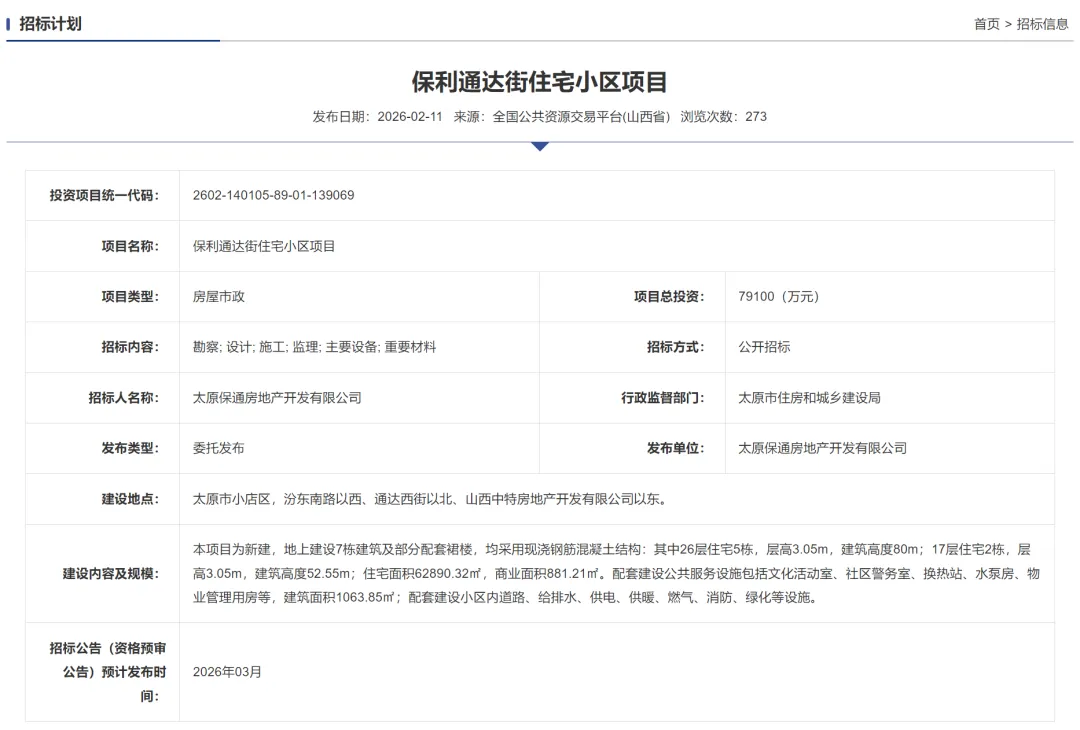 保利通达街住宅小区项目项目总投资79100万元,招标内容包括勘察; 设计; 施工; 监理; 主要设备; 重要材料。