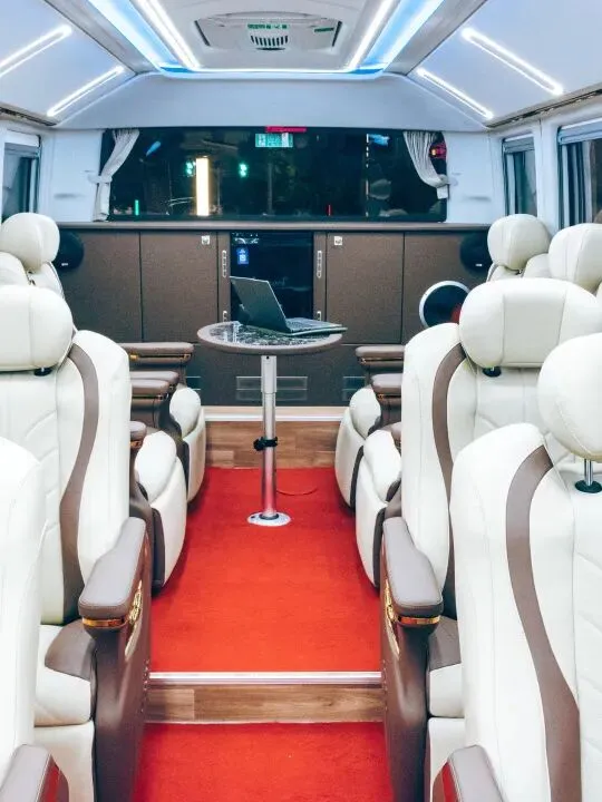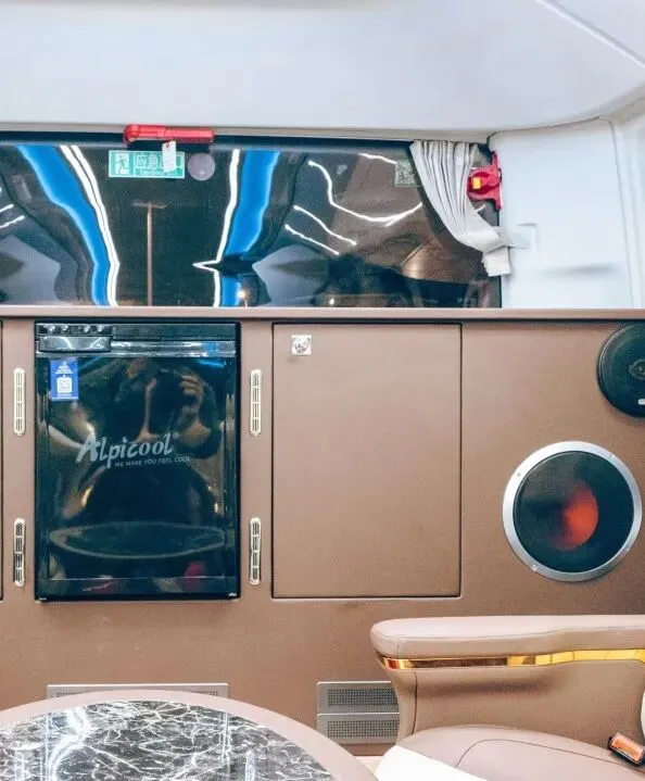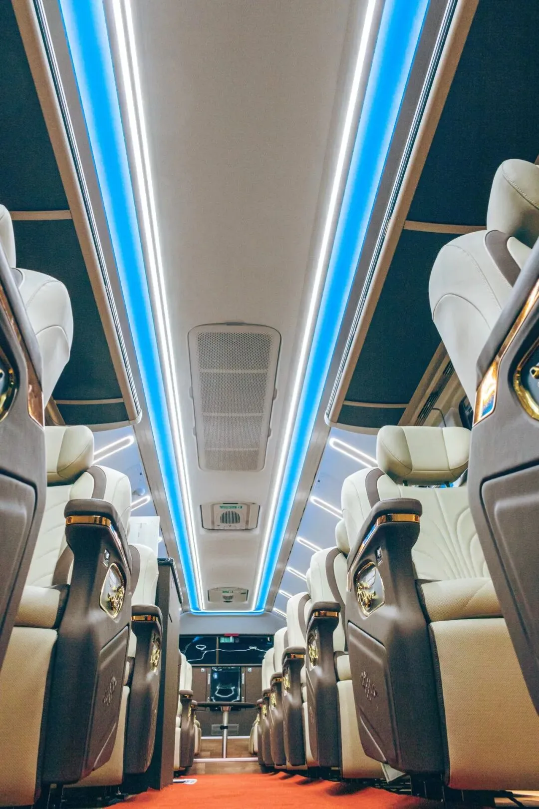 12米超长车身,却仅设16个轻奢座席,彻底告别传统大巴的拥挤局促,给予每一位乘客充足的私人空间。超宽过道畅通无阻,无需侧身避让;宽敞舒适的乘坐区域搭配超大行李存放空间,轻松收纳,让旅途告别繁琐,只剩从容。