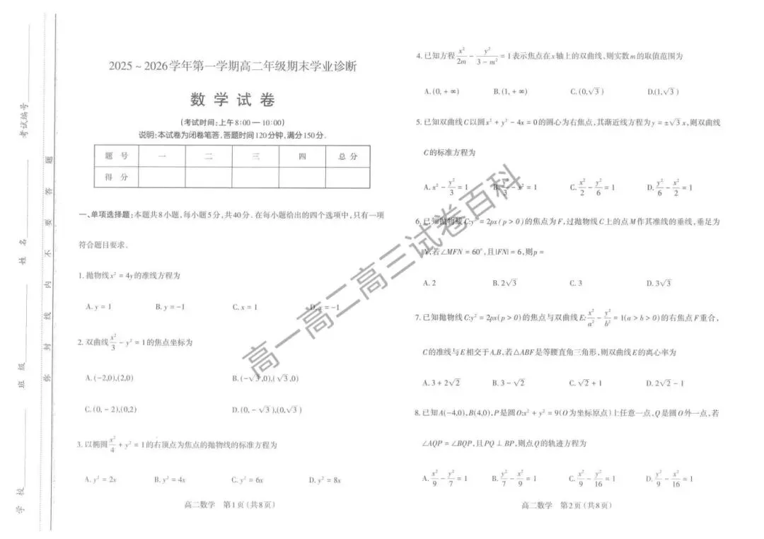2025-2026学年高二期末