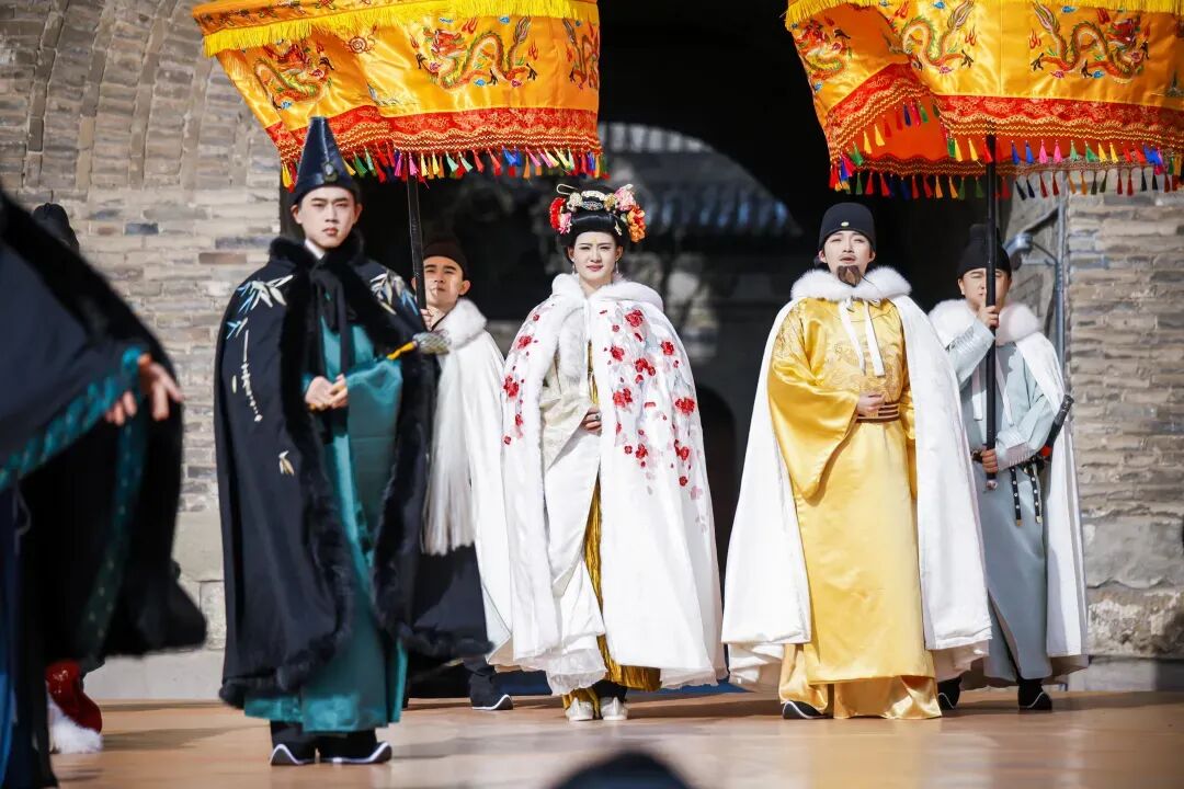 在北广场及北街,“盛境・龙兴盛世贺岁礼”将以行进式互动演绎为核心,融合盛唐礼乐、昭陵六骏两大文化符号,借助全息投影秀、巨型灯彩、唐风演艺及威亚飞天表演,打造沉浸式元日庆典,让游客穿越千年亲历李世民归晋贺岁的盛世华章。