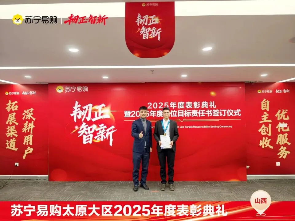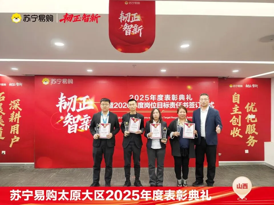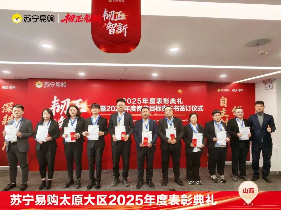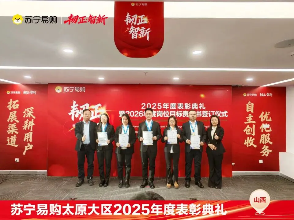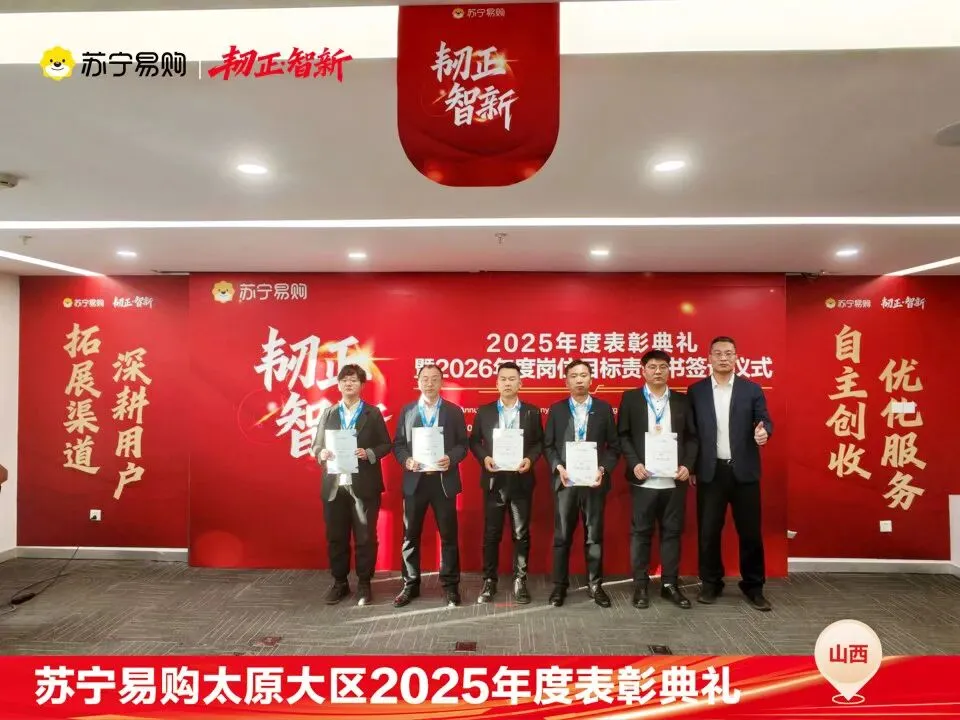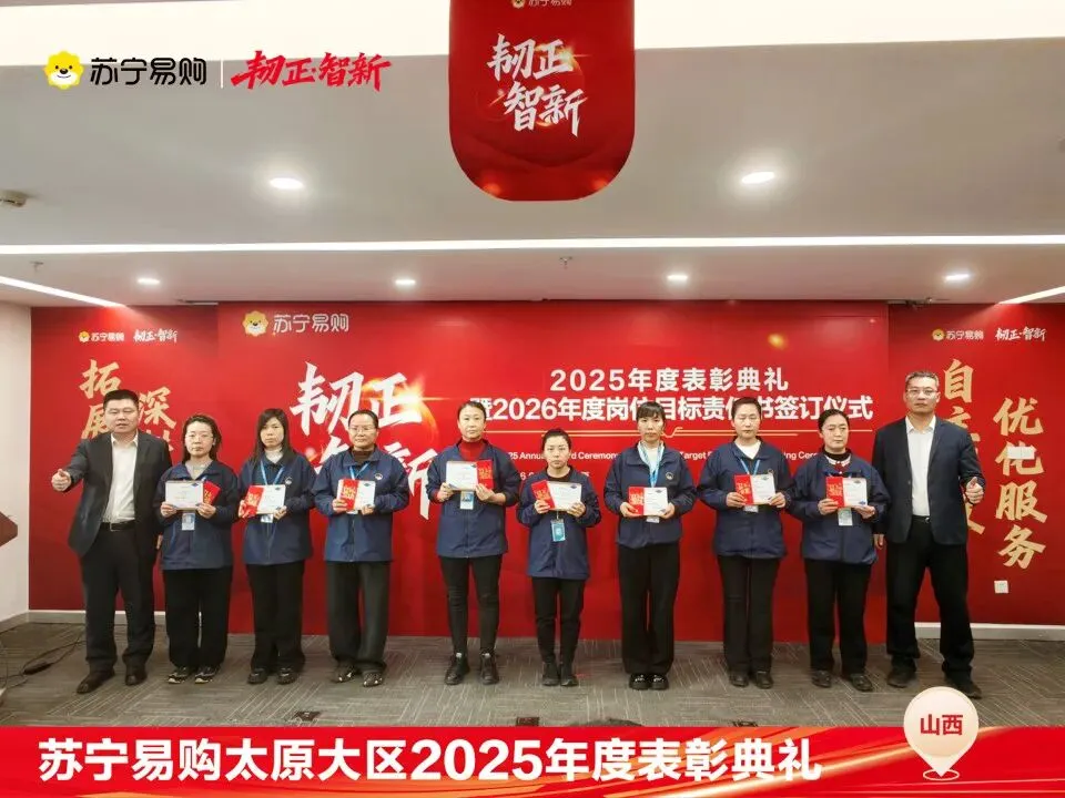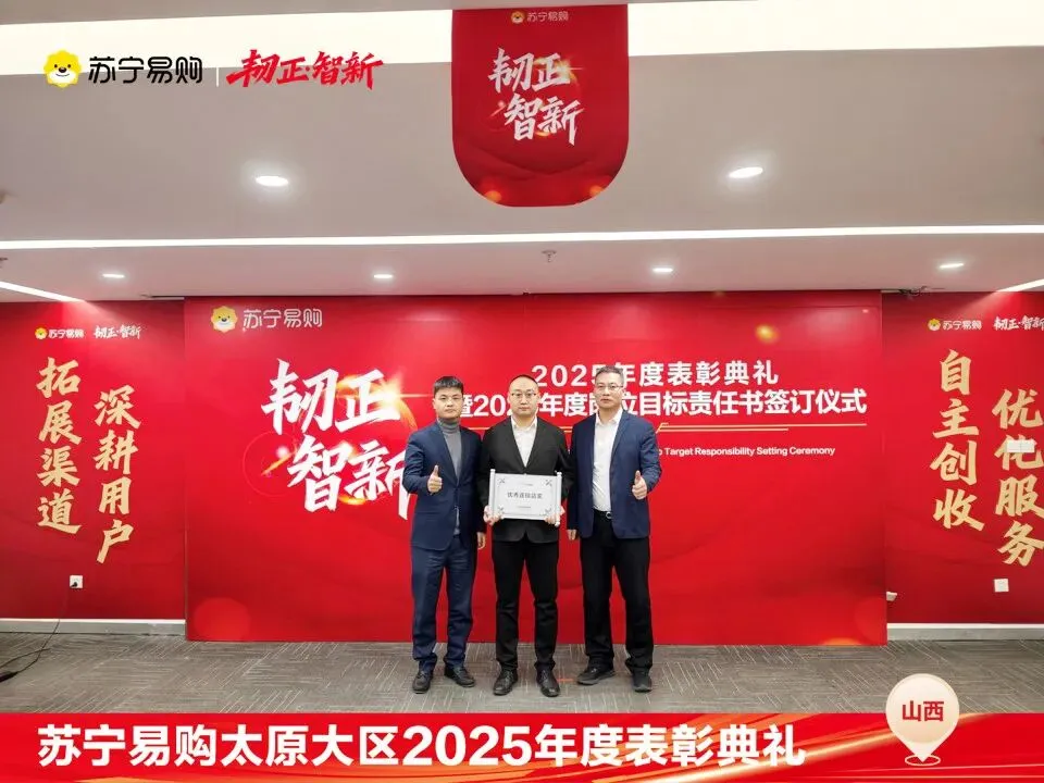 表彰不仅是一种荣誉,对获奖个人与团队在过去一年的业绩、付出的肯定和认可,更是对新的一年业绩、担当上的更高的期望,这也是一份责任和使命。再次向所有获奖人员和团队表示祝贺。同时2026年的战役已打响,让我们一起攻坚克难,再创属于太原大区、属于每一位山西苏宁人的辉煌!