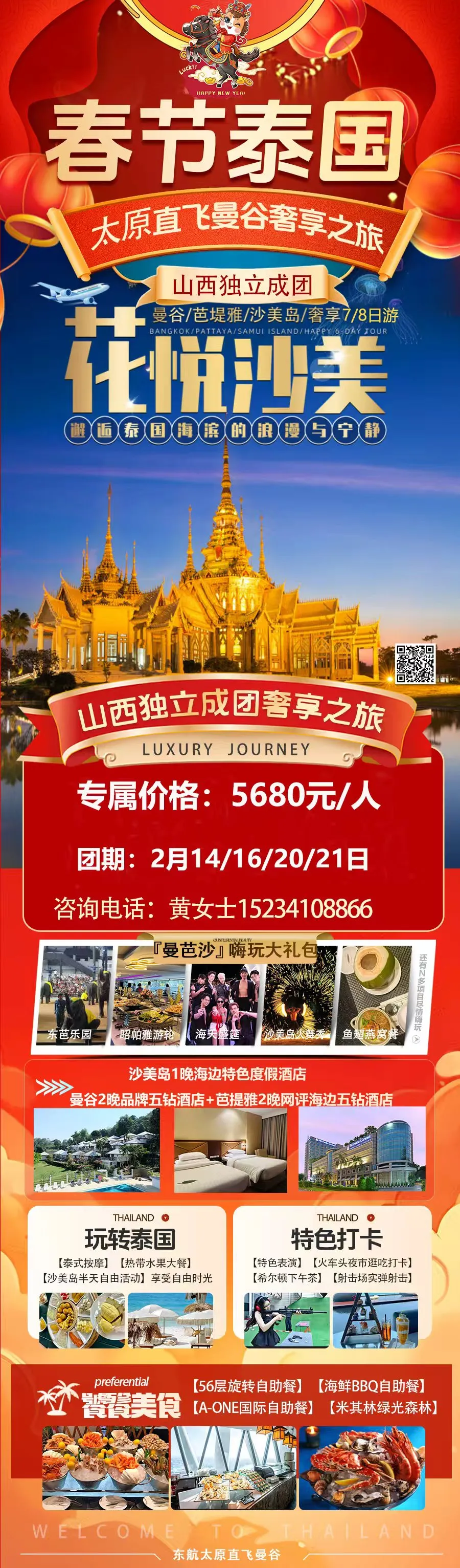 东航山西 x 合作旅行社 推出👇太原⇌曼谷往返机票+全程轻奢行程