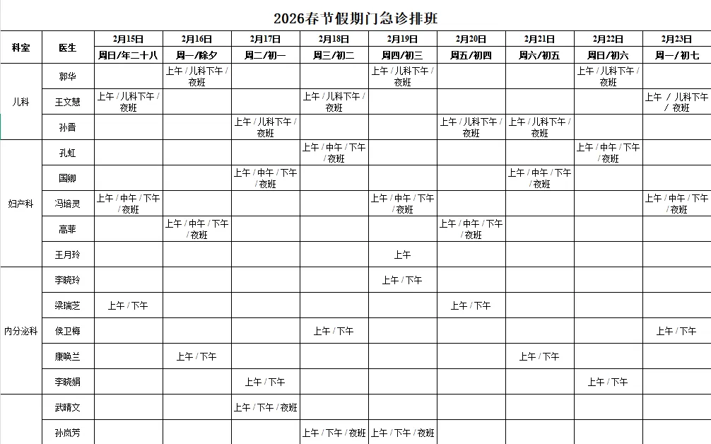 2026年太原市小店区人民医院春节假期放假通知及门急诊出诊安排