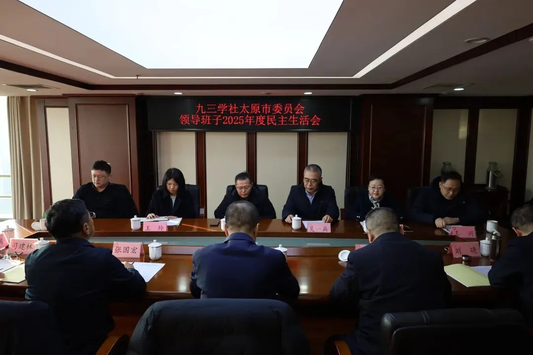 2月13日,九三学社太原市委领导班子2025年度民主生活会在机关会议室召开。会议由社市委主委李新华主持,副主委张国宏、崔晓青、司建林、刘晓参加会议。市纪委监委驻市委统战部纪检监察组组长曹宏伟、市委统战部二级调研员吴一兵、社省委内部监督委员会副主任陈文惠等到会指导。社市委内部监督委员会副主任韩宇列席会议。