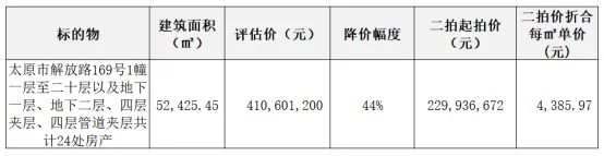 位于太原市解放路169号1幢一层至二十层以及地下一层、地下二层、四层夹层、四层管道夹层共计24处房产(太原富力万达文华酒店,整体拍卖),面积共52425.45平方米,2026年2月26日10时至2026年2月27日10时止(延时的除外)在京东司法拍卖平台上(网址:http://paimai.jd.com/)作第二次拍卖。