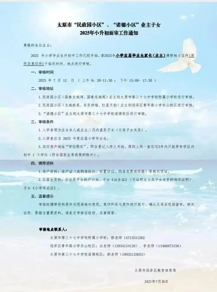 3、山大附万柏林校区:招生方式为业主子女直升,目前除了买房直升,没有其他招生方式。