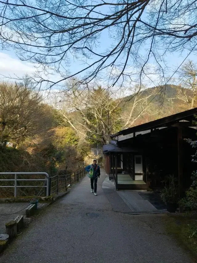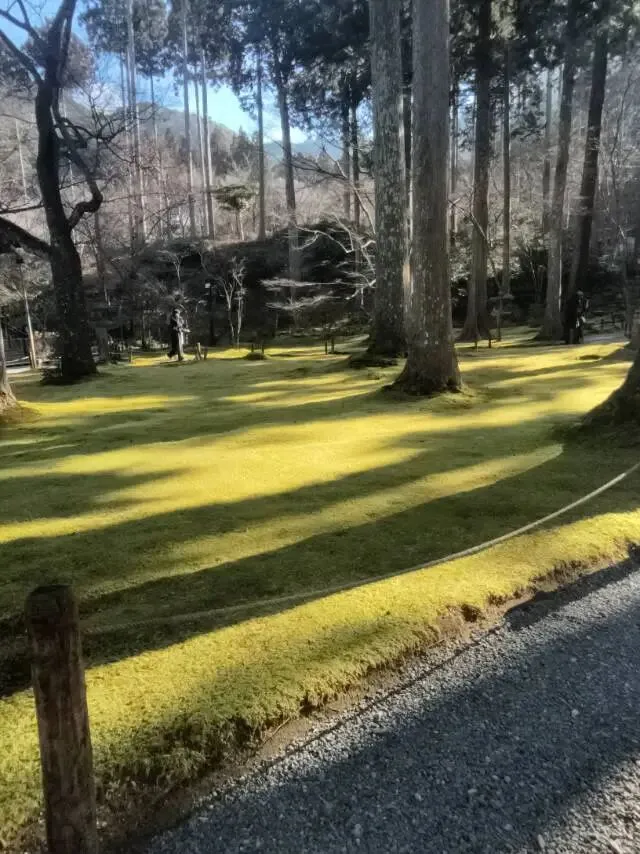 三千院是本次行程最为难忘的地方。因为它地处偏僻,所以去的人不多,而且我们出发得早,是第一批进入寺院的游客,因此享受了一次宁静的游览。三千院是位于京都左京区大原地区的一座历史悠久的天台宗寺院,从京都站搭乘巴士17号或18号线,至“大原”站下车,步行15分钟左右就到;或者从四条河原町搭16号或17号线;从出町柳站前搭京都巴士亦可。三千院起源可追溯至平安时代,由天台宗开山祖师最澄大师于比睿山东塔南谷创建,最初名为“一念三千院”或“圆明院”,是高僧修行的简朴小庵。后经圆仁大师(慈觉大师)继承发展,平安时代后期成为“门迹寺院”(由皇族担任住持的贵族寺庙),又称“梶井门迹”或“西本愿寺门迹”。历代皇室贵族在此居住与修行,寺内珍藏的国宝“往生院阿弥陀三尊像”便是其辉煌历史的见证。前往寺院的山路