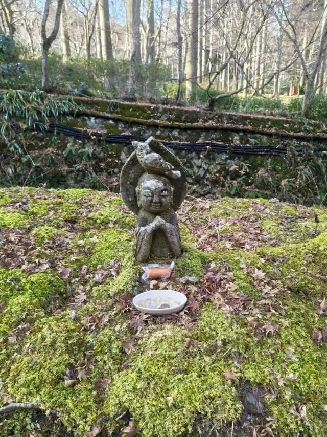 有青园:以“青苔之海”闻名,园内铺满厚实绿苔,点缀石灯笼、古树与数百尊小型童子地藏菩萨像(源自镰仓时代),这些隐藏在苔藓间的石像增添神秘感。园名取自六朝诗人谢灵运的诗句,象征“有青草之园”,夏季如绿海般宁静,秋季则转为红叶覆盖的绚烂景观。