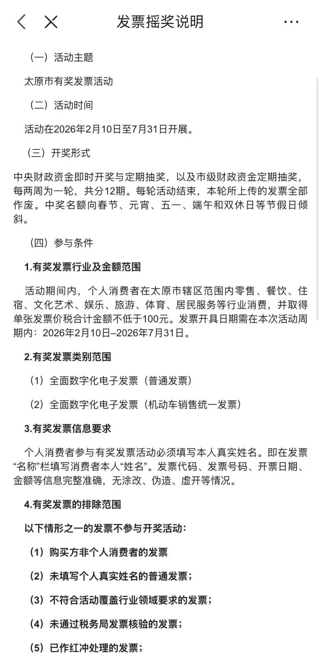 首先上通知,信息来源于太原官网,好朋友实践过,消费满100摇奖,中奖率很高,很高。