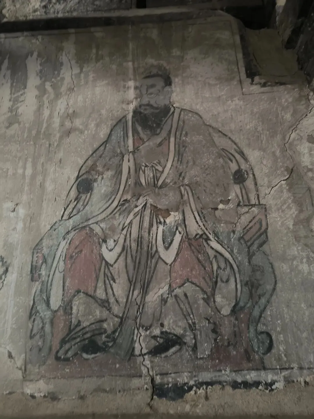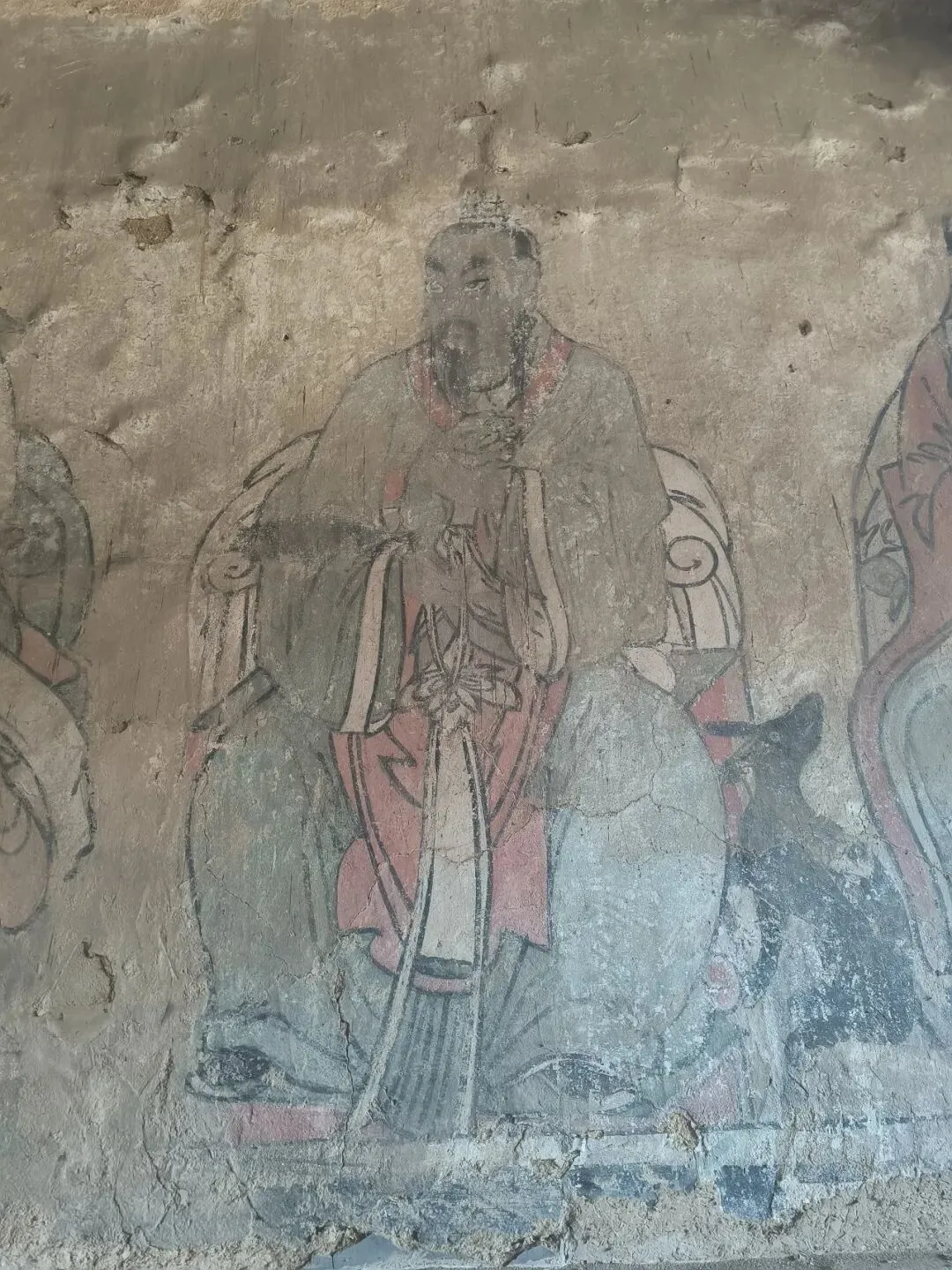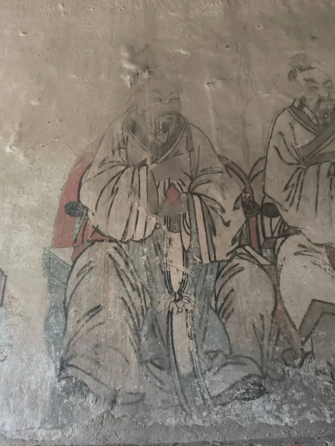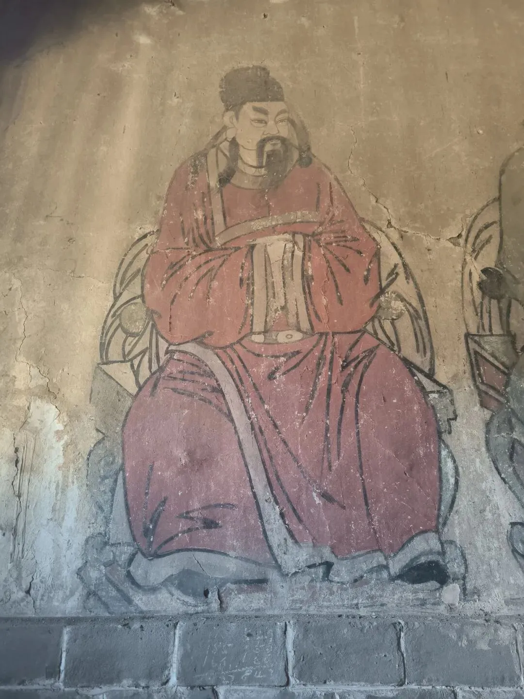 殿内的惊喜,莫过于留存完好的明代壁画。东西山墙上,12位药王坐像栩栩如生,高约1.5米,涵盖扁鹊、华佗、张仲景、孙思邈、李时珍等历代名医,袍服以红、绿、白为主色调,笔法流畅、设色淡雅,虽历经岁月侵蚀,依旧能窥见当年的绘画水准。不同于陕西黄陵轩辕殿侧重黄帝事迹的描绘,这里的药王壁画将祭祀文化与中医药文化相融,是北方乡村庙宇独有的文化特色。