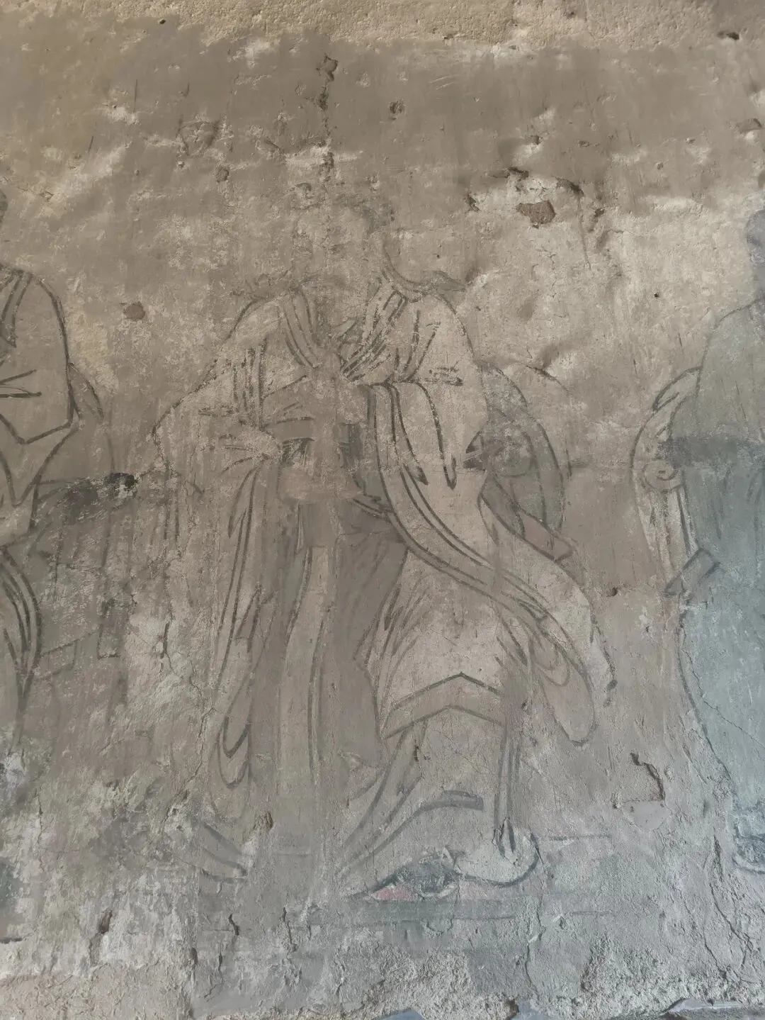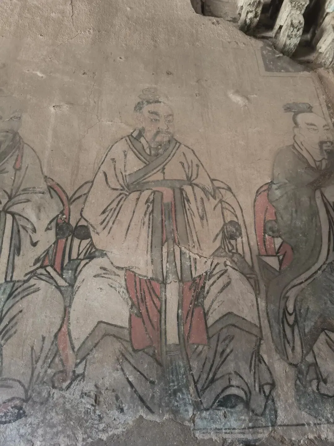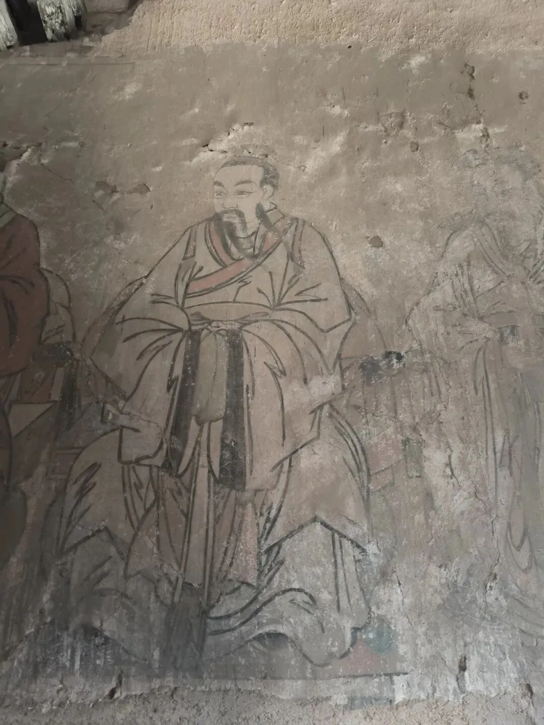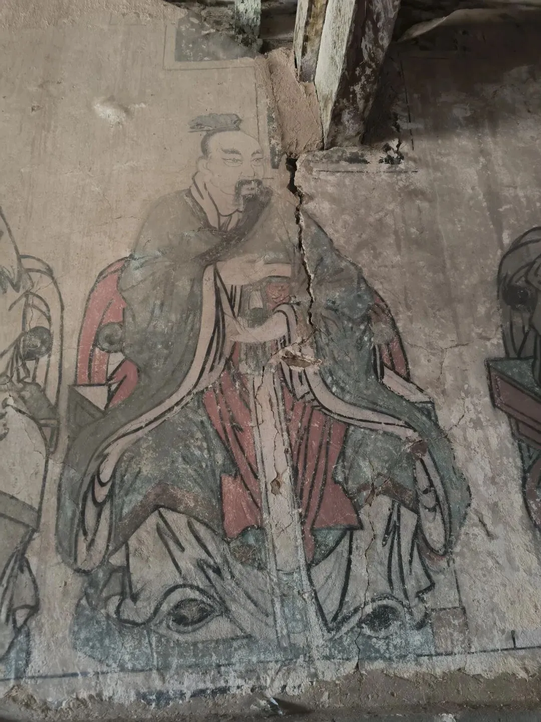 殿内的惊喜,莫过于留存完好的明代壁画。东西山墙上,12位药王坐像栩栩如生,高约1.5米,涵盖扁鹊、华佗、张仲景、孙思邈、李时珍等历代名医,袍服以红、绿、白为主色调,笔法流畅、设色淡雅,虽历经岁月侵蚀,依旧能窥见当年的绘画水准。不同于陕西黄陵轩辕殿侧重黄帝事迹的描绘,这里的药王壁画将祭祀文化与中医药文化相融,是北方乡村庙宇独有的文化特色。