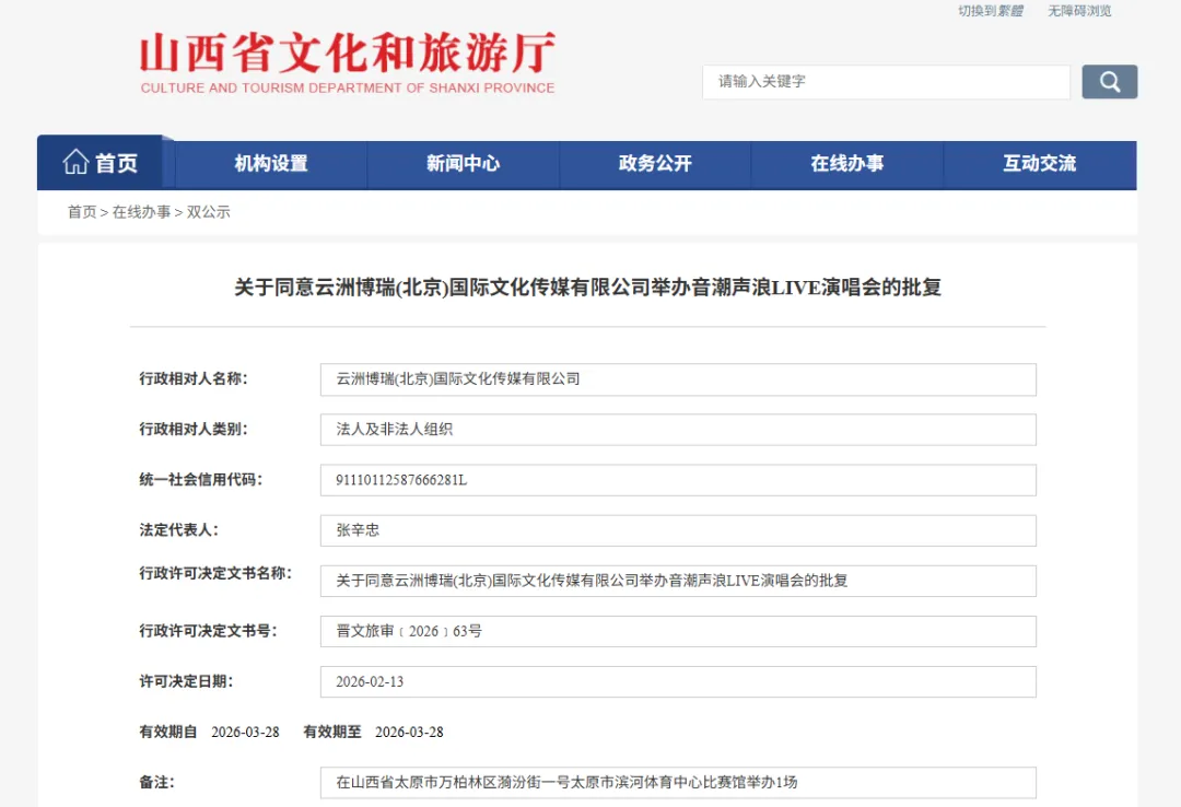 2月13日,山西省文化和旅游厅批复多场演出。具体如下: