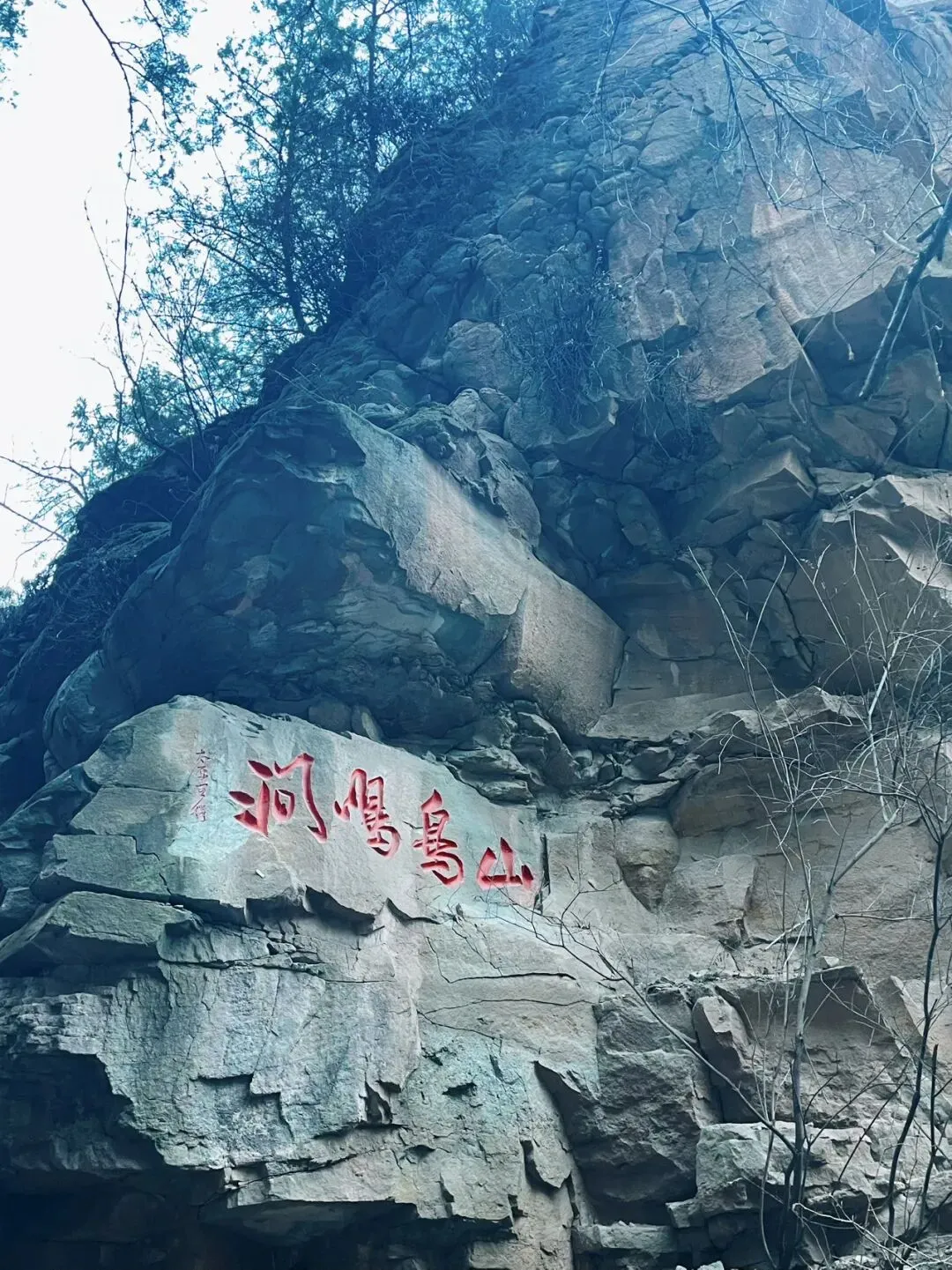 • 山鸟鸣涧:走到刻有“山鸟鸣涧”的崖壁下,恰好有山雀掠过,清脆的鸟鸣在山谷间回荡,瞬间让这幅冰雪画卷活了起来。